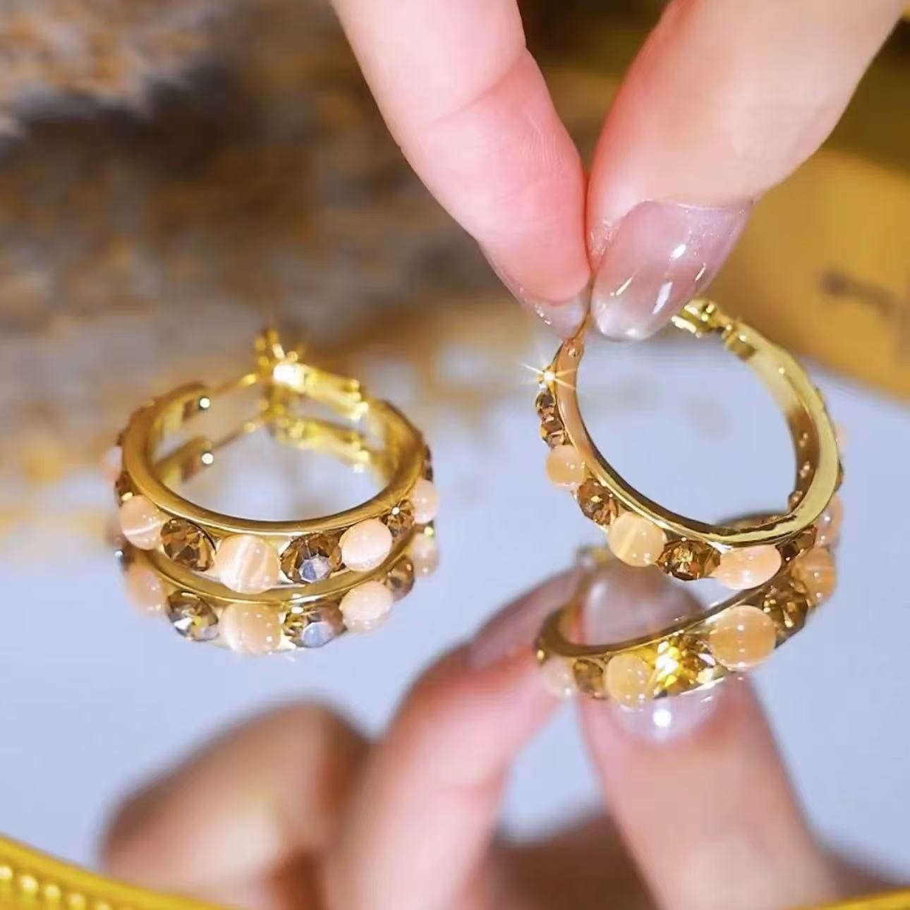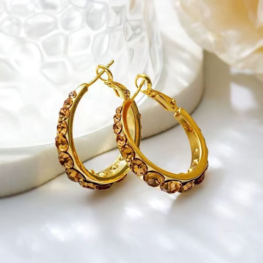 Супер вспышка страз кольцо серьги женский дизайн чувство серьги 2024 новая мода ретро мода ушные застежки новый стиль