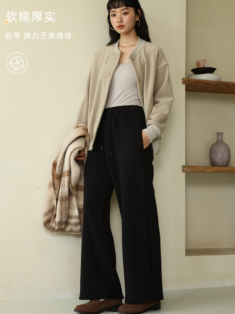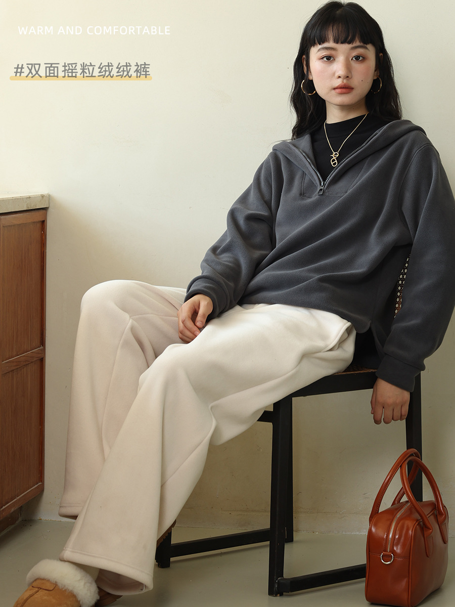 Главная страница > Женские повседневные брюки на осень и зиму, двусторонние флисовые однотонные брюки прямого кроя, с высокой талией, драпированные, прямые, длинные, свободные, широкие брюки