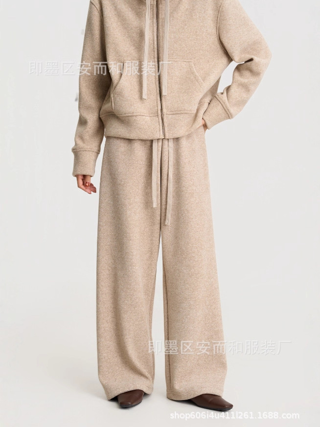 Главная страница > Ленивый мягкий клейкий высокий талия шнуровка прямые повседневные брюки 2024 теплый и бархатный комфорт осенью и зимой