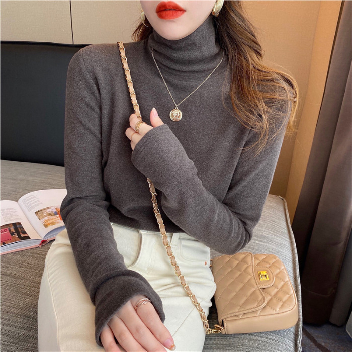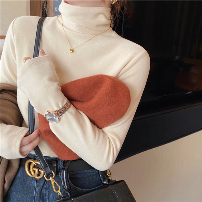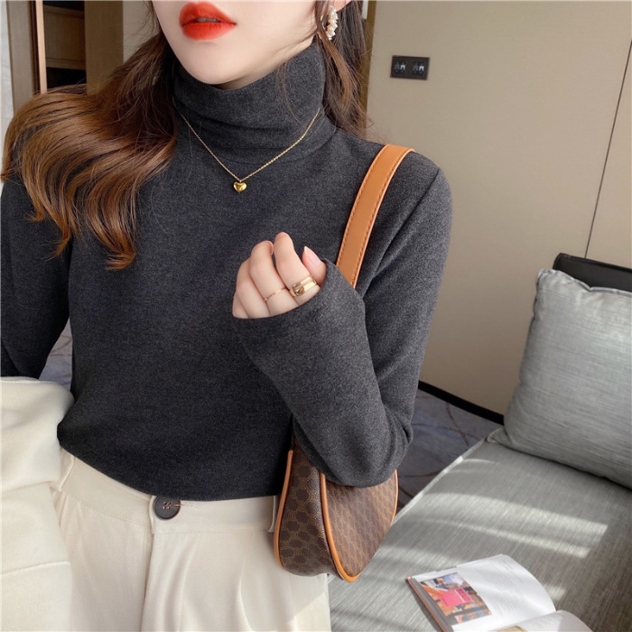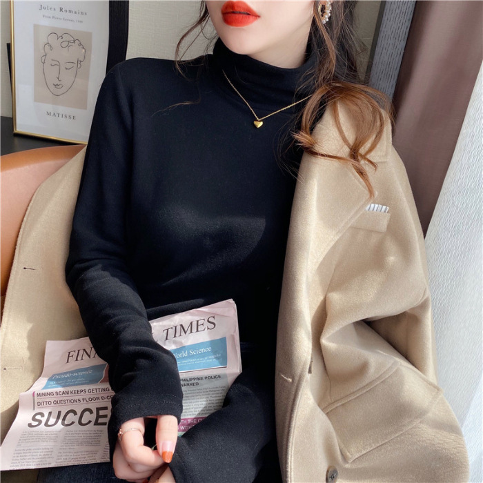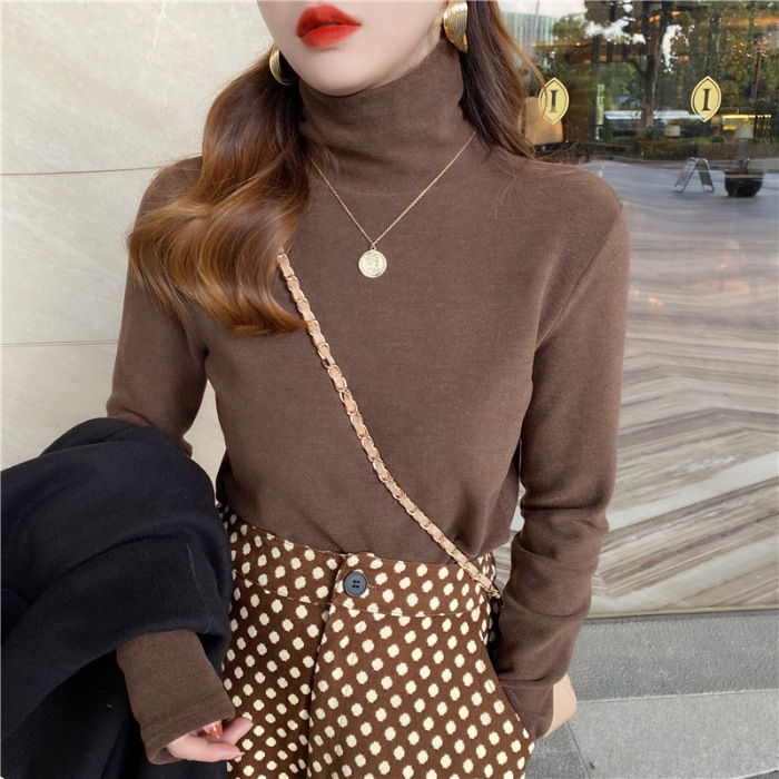 Главная страница > Водолазка с ворсовым воротником, женская футболка, осенне-зимний стиль, теплая футболка с длинными рукавами и начесом на флисовой подкладке для маленьких людей