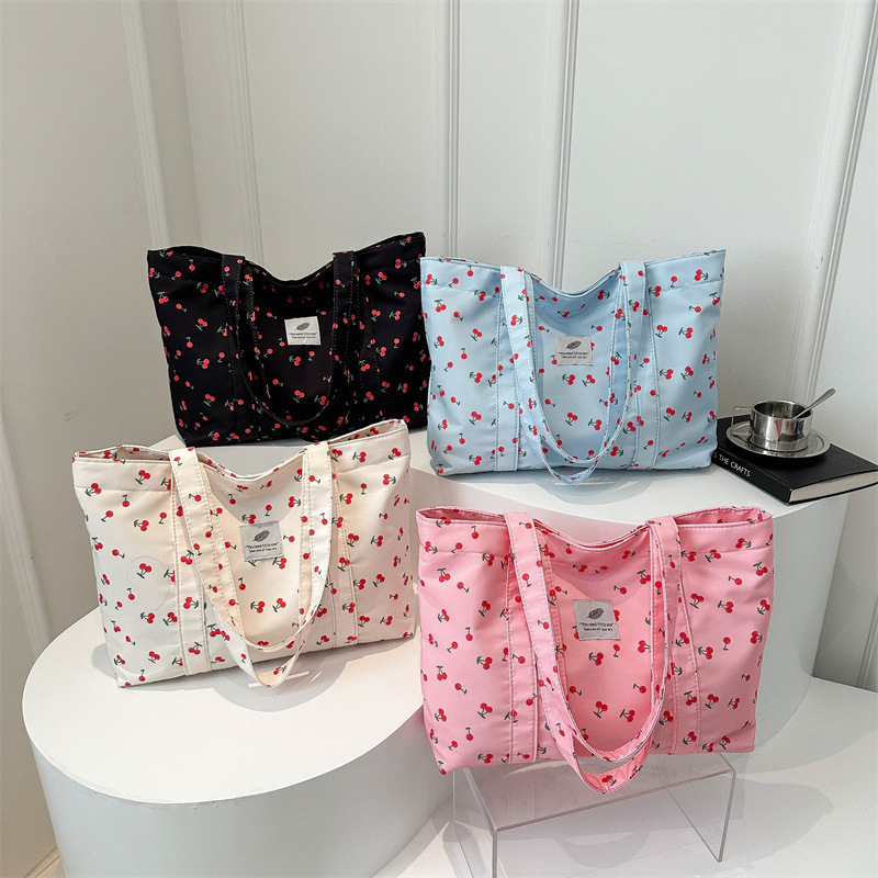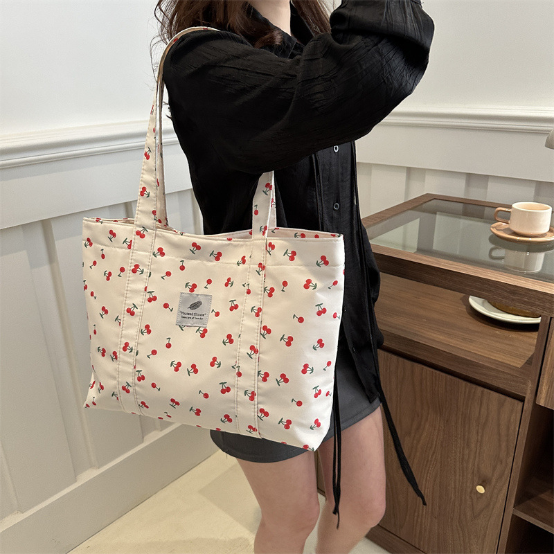 Главная страница > Модный маленький свежий вишневый принт Тот 2024 летний новый большой объем иностранных цветов сумка на плечо женская сумка