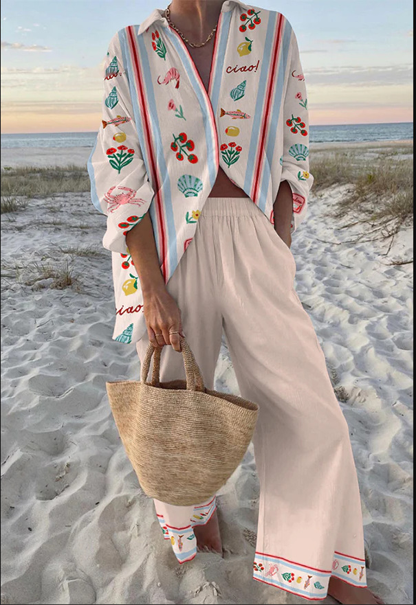Главная страница > Европейский и американский новый креативный рыбный затенение повседневный набор свободные спортивные широкие брюки с морскими элементами повседневный набор