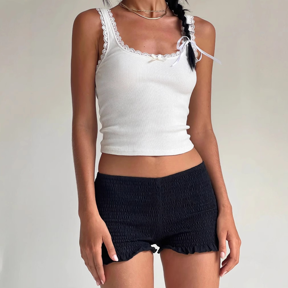 Европейские и американские летние женские однотонные повседневные сексуальные клетчатые плиссированные супершорты с низкой талией и рюшами Y2k