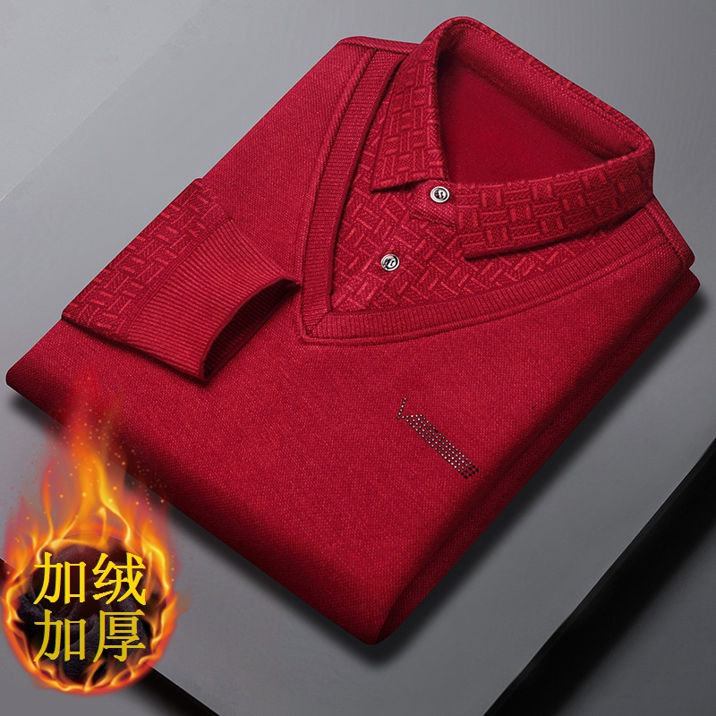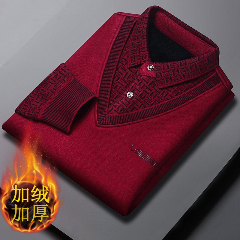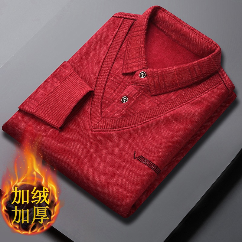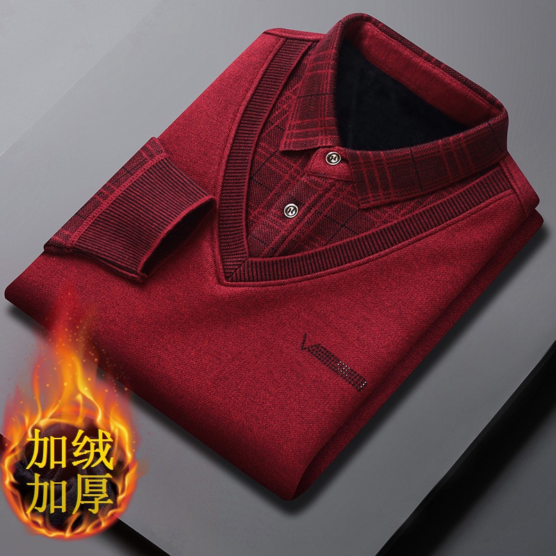Главная страница > Свитер на день рождения папы, мужской утолщенный ярко-красный теплый топ на флисовой подкладке, имитация свитера из двух предметов для среднего и пожилого возраста