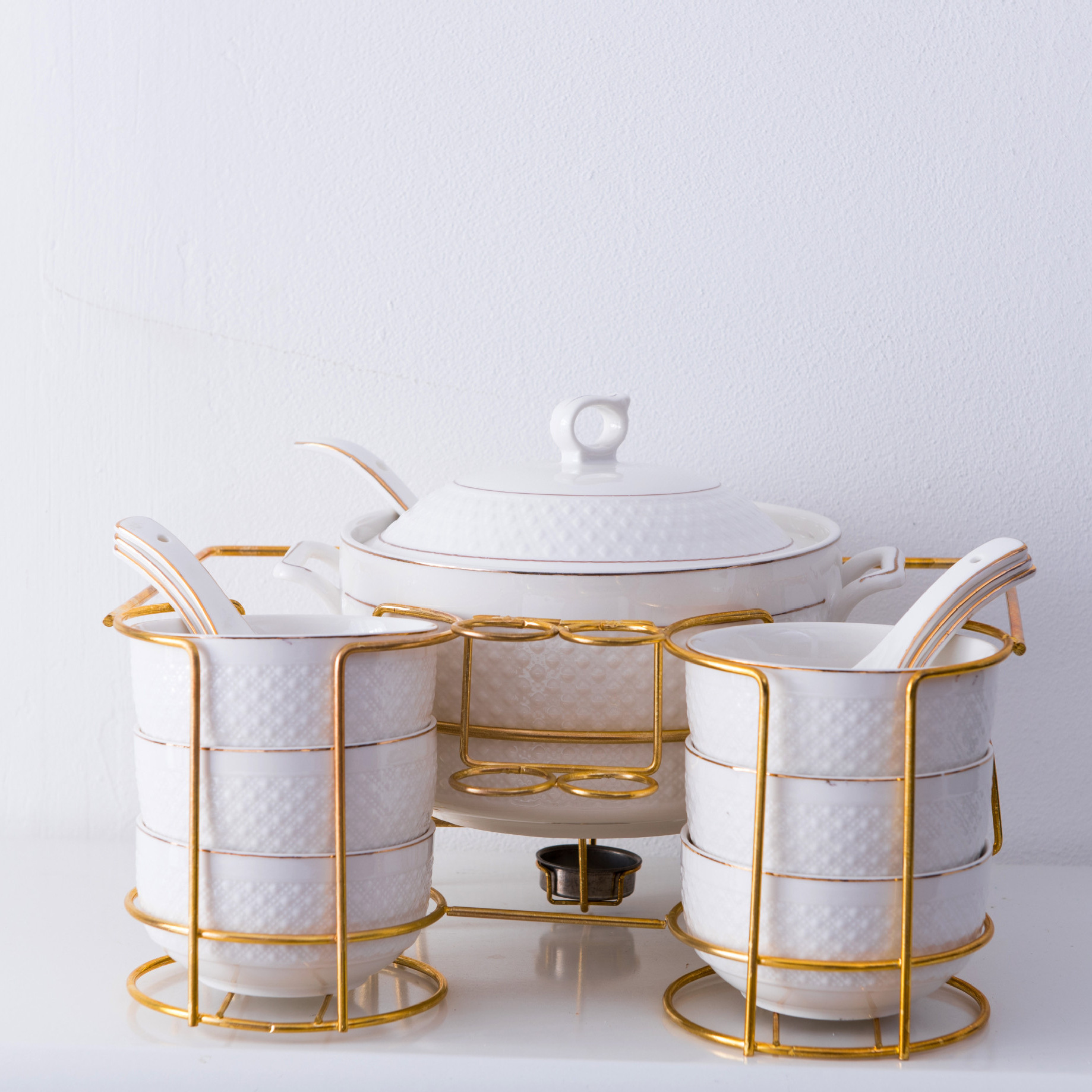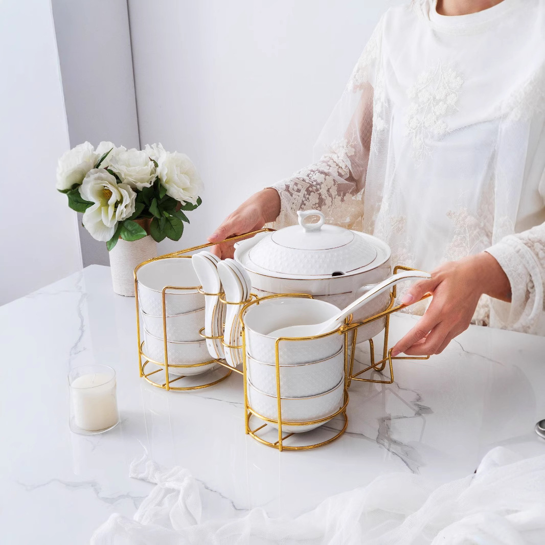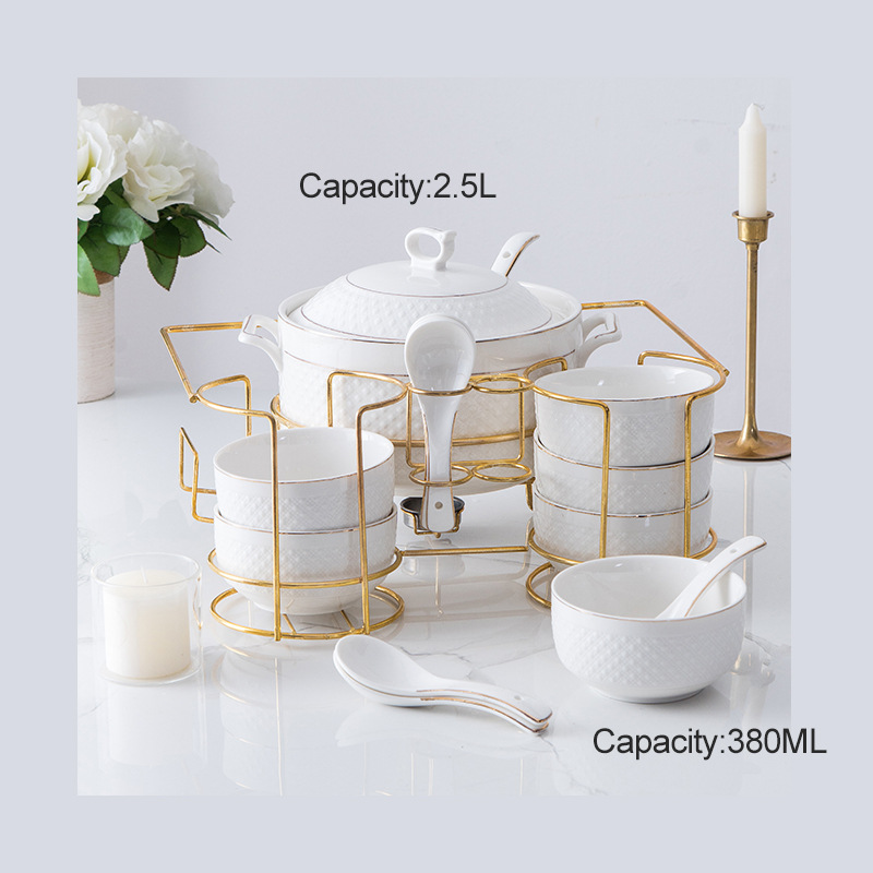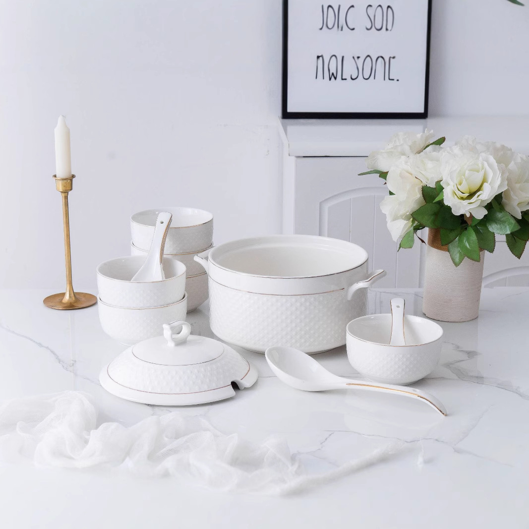 Главная страница > Внешняя торговля белый рельеф Пномпень суп набор с крышкой экспорт рельефный золотой керамический суп горшок