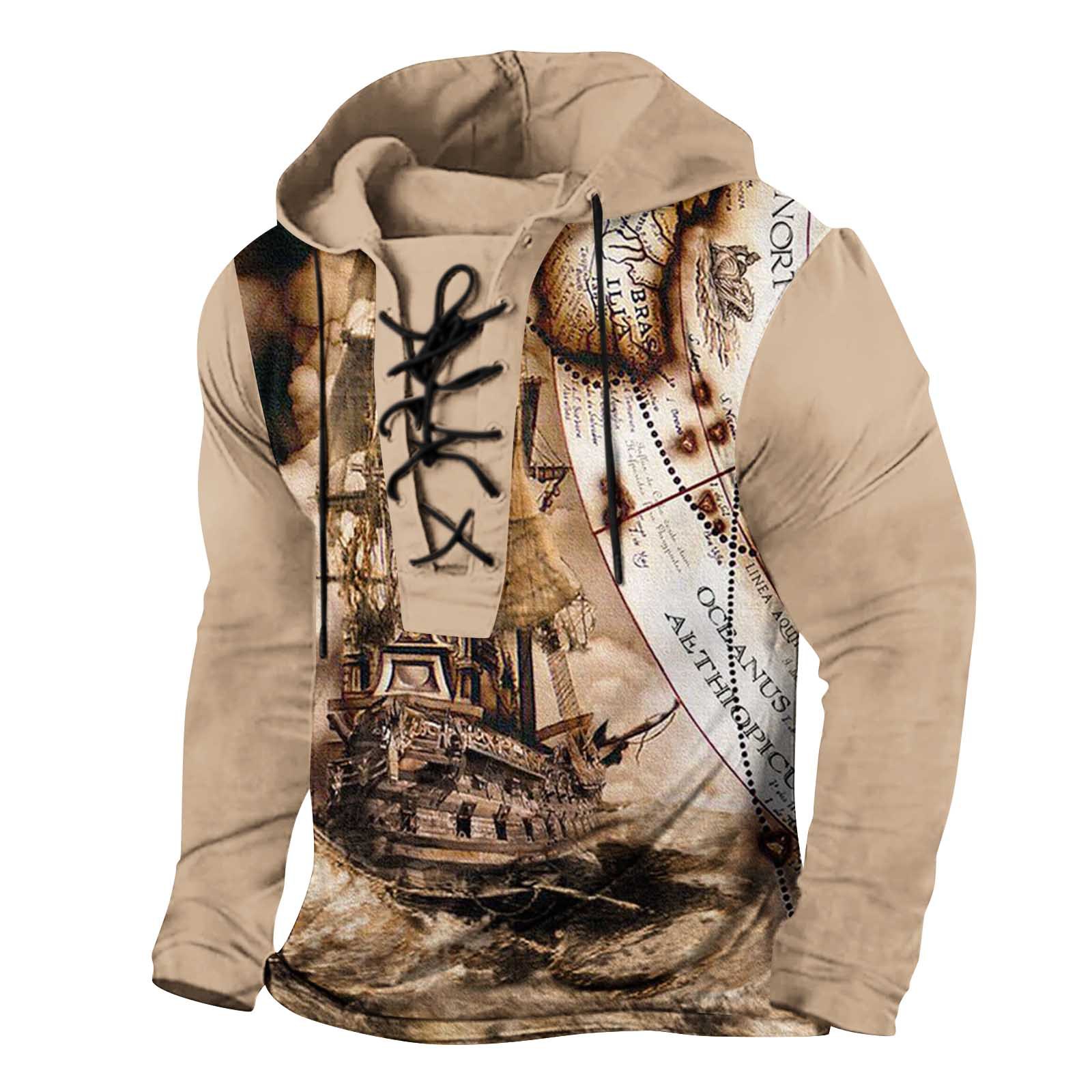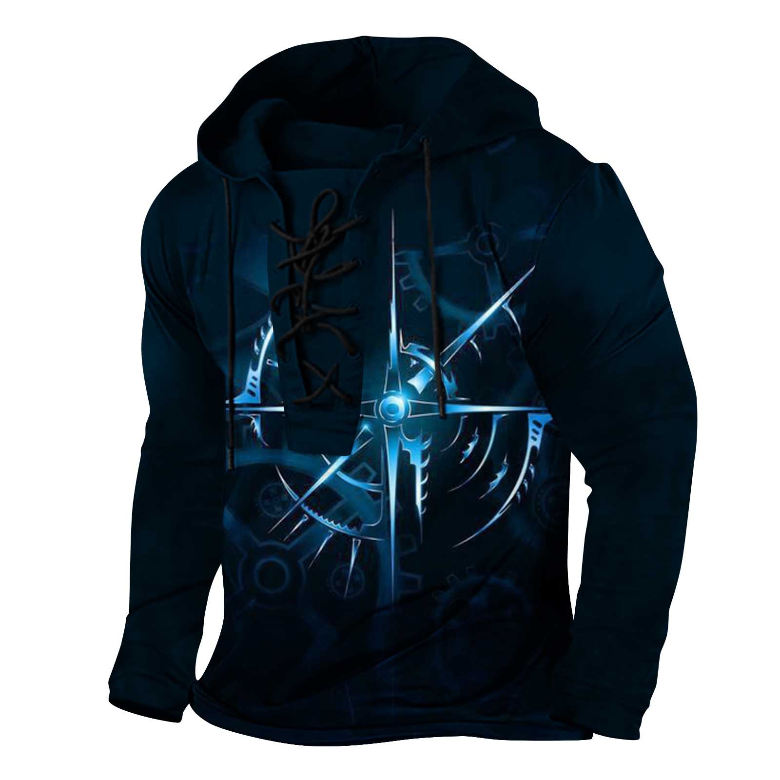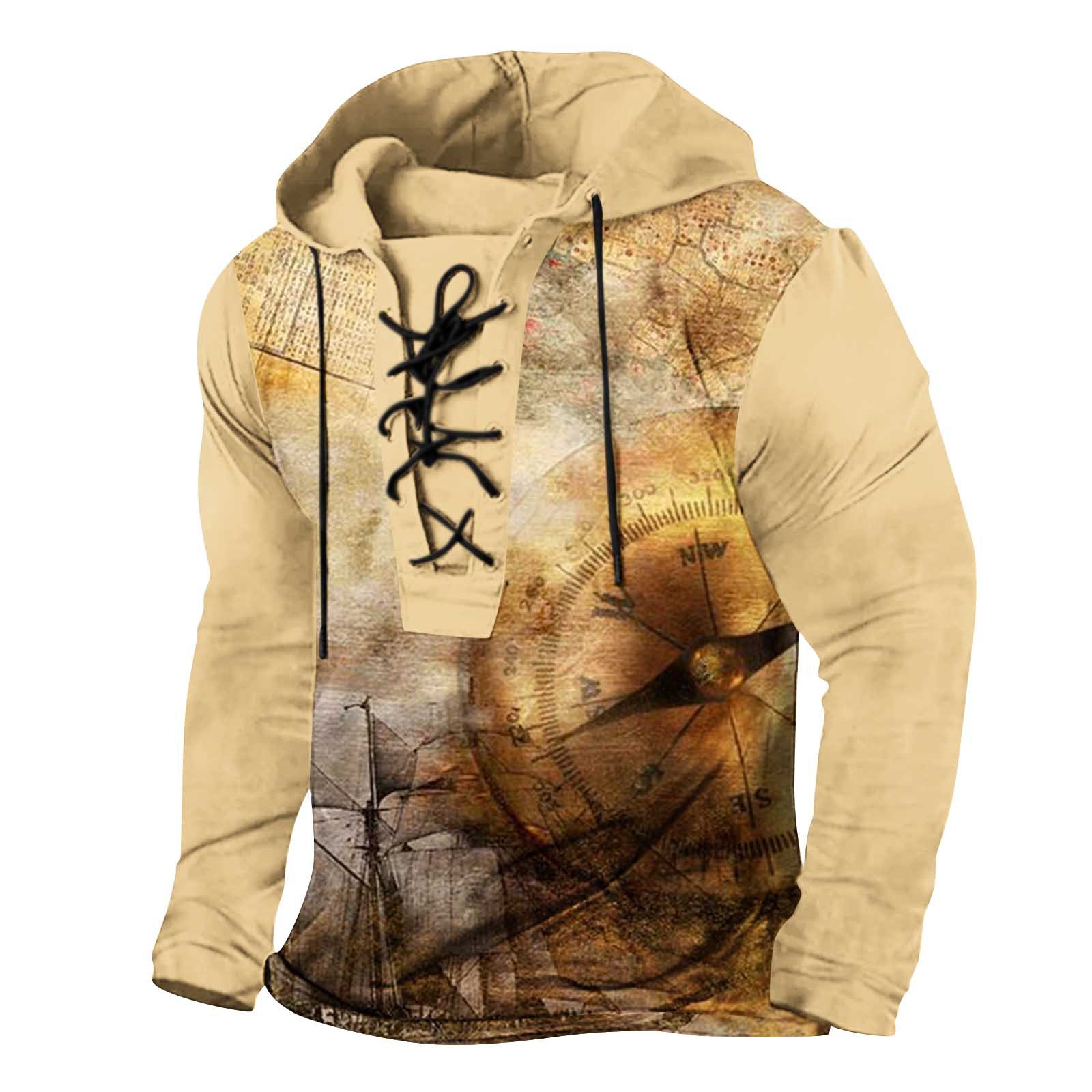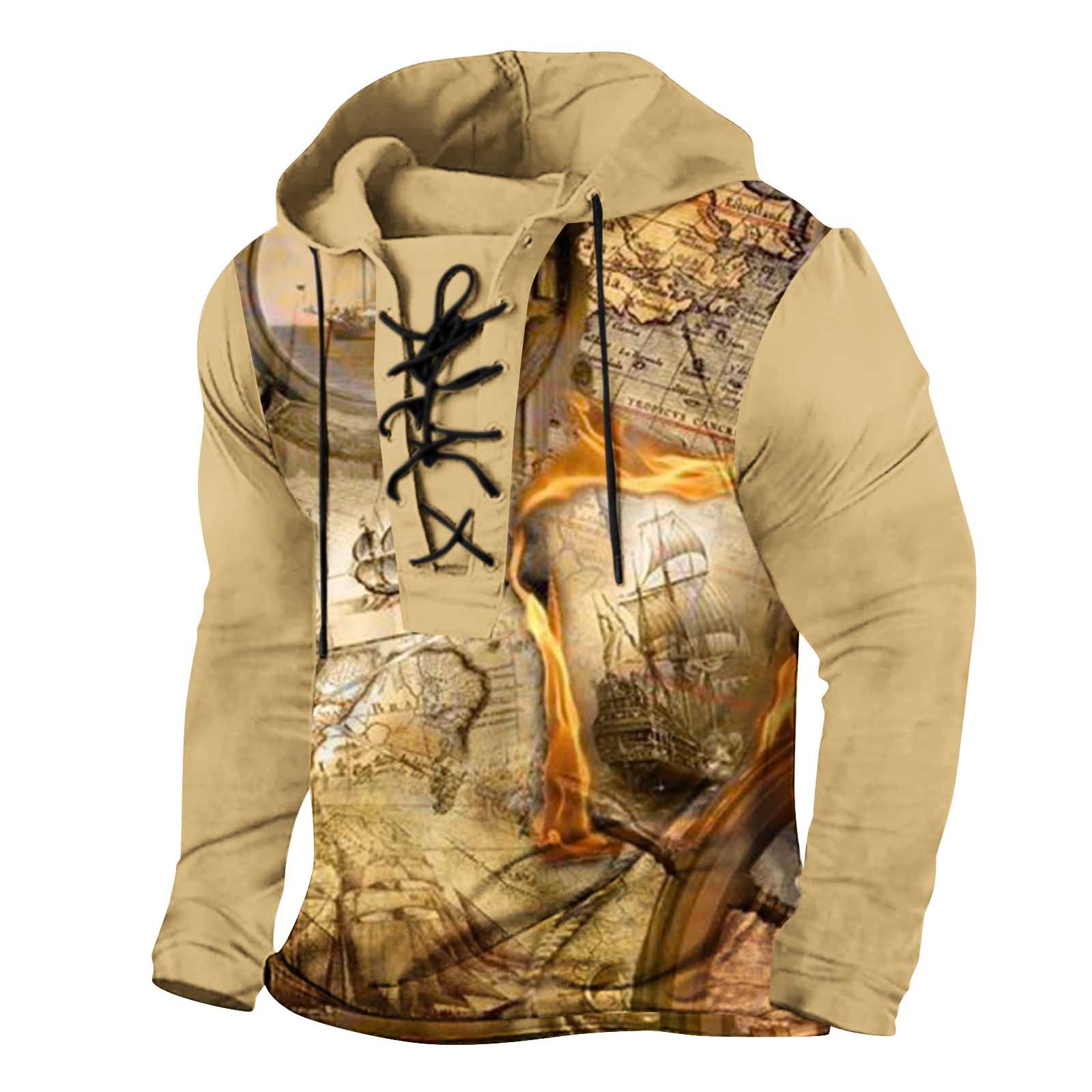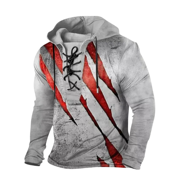 Главная страница > Зимняя трансграничная европейская и американская мужская экспортная ретро футболка с цифровой печатью на шнуровке большого размера с капюшоном и длинными рукавами, мужская одежда