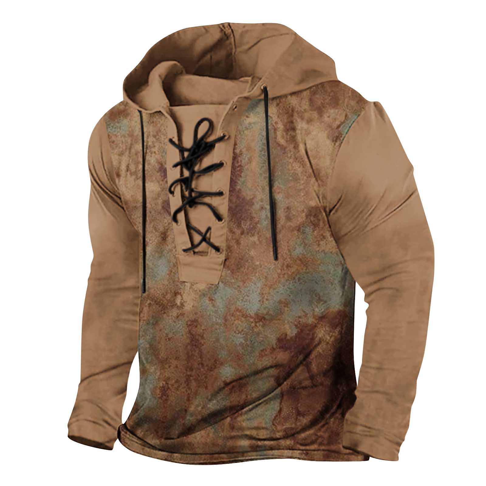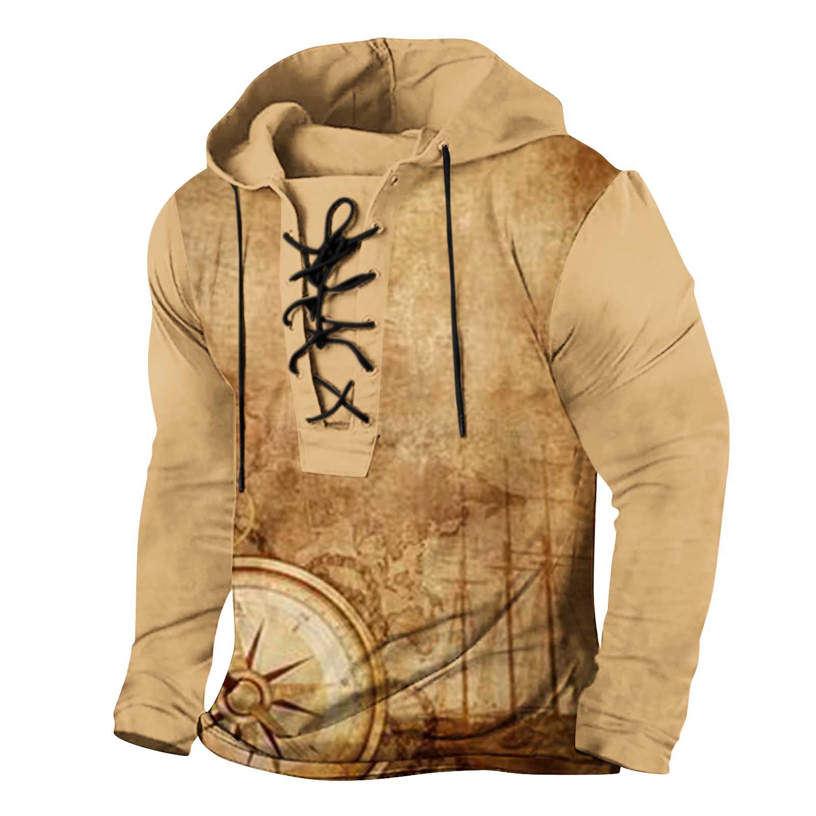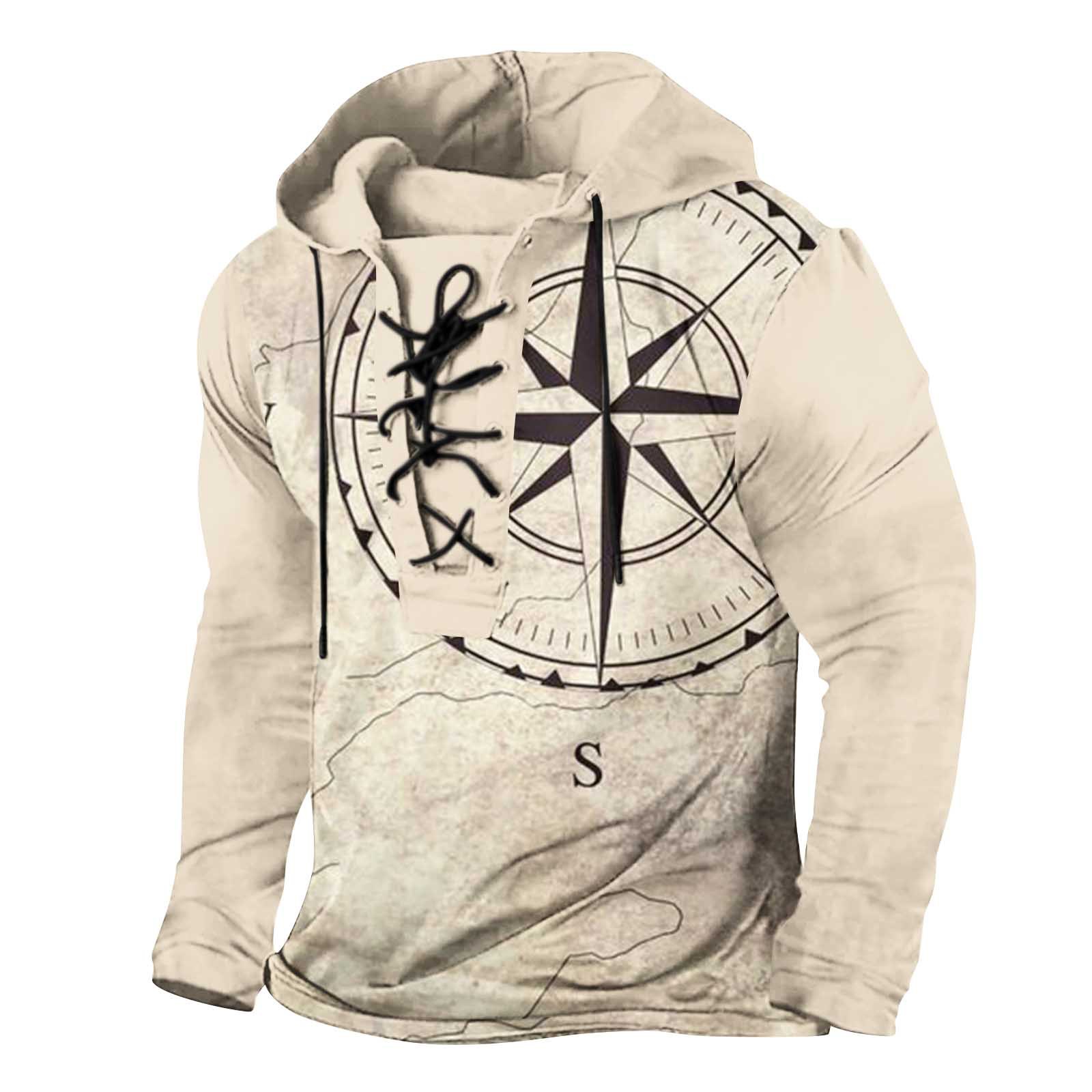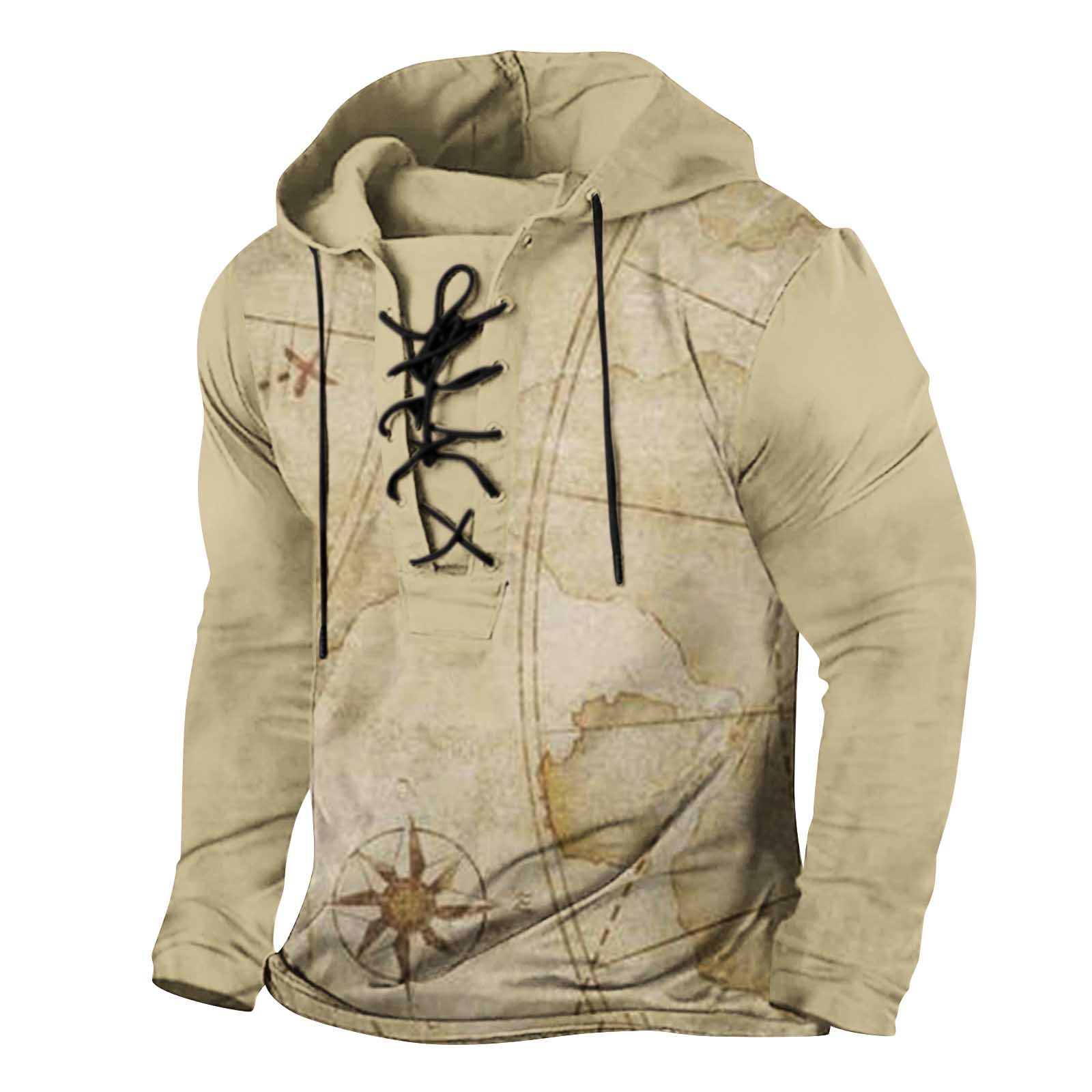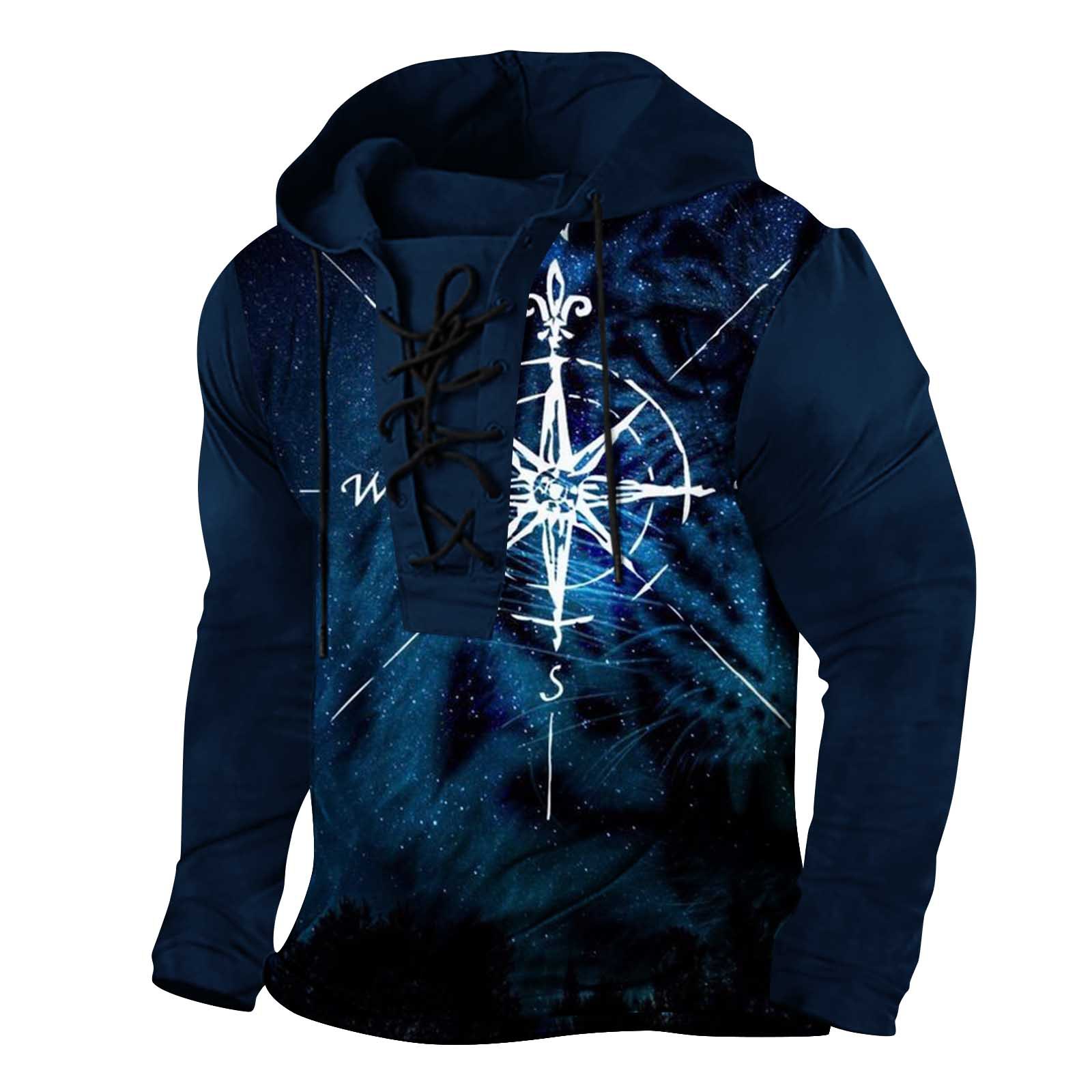 Главная страница > Зимняя трансграничная европейская и американская мужская экспортная ретро футболка с цифровой печатью на шнуровке большого размера с капюшоном и длинными рукавами, мужская одежда