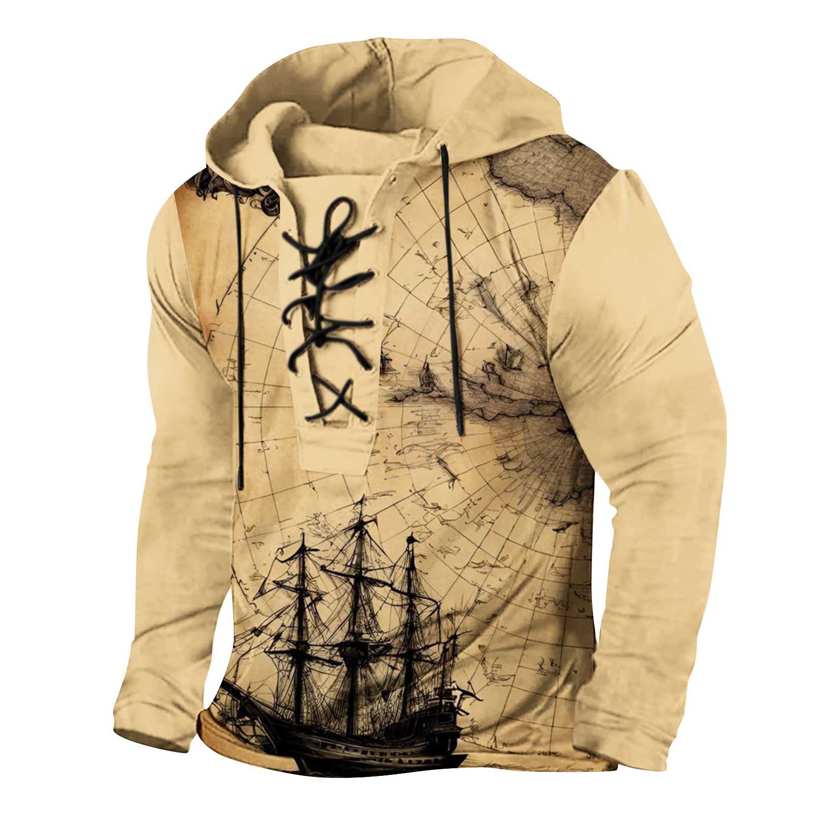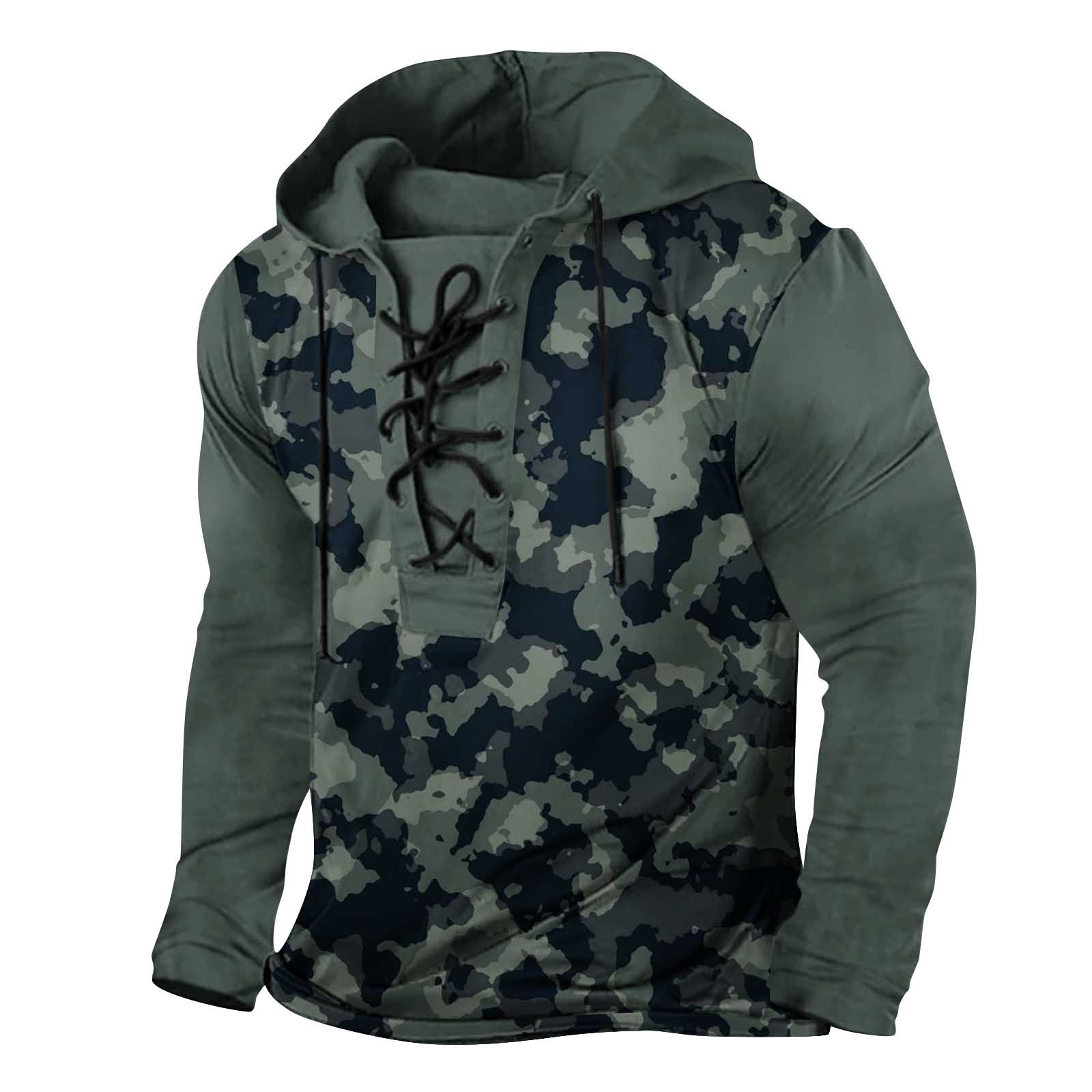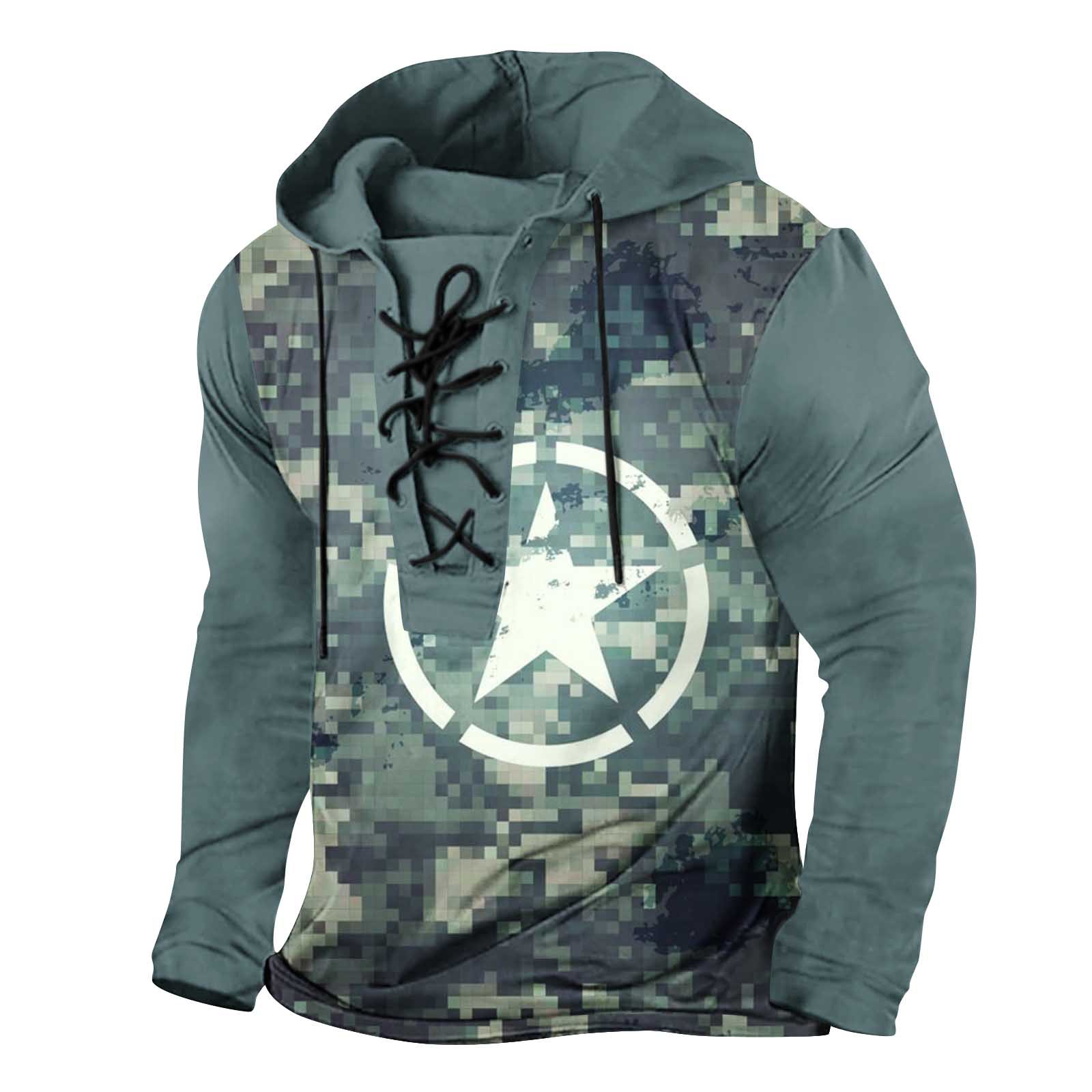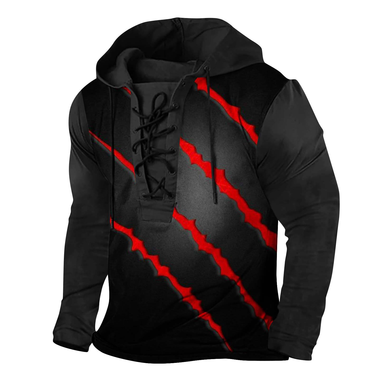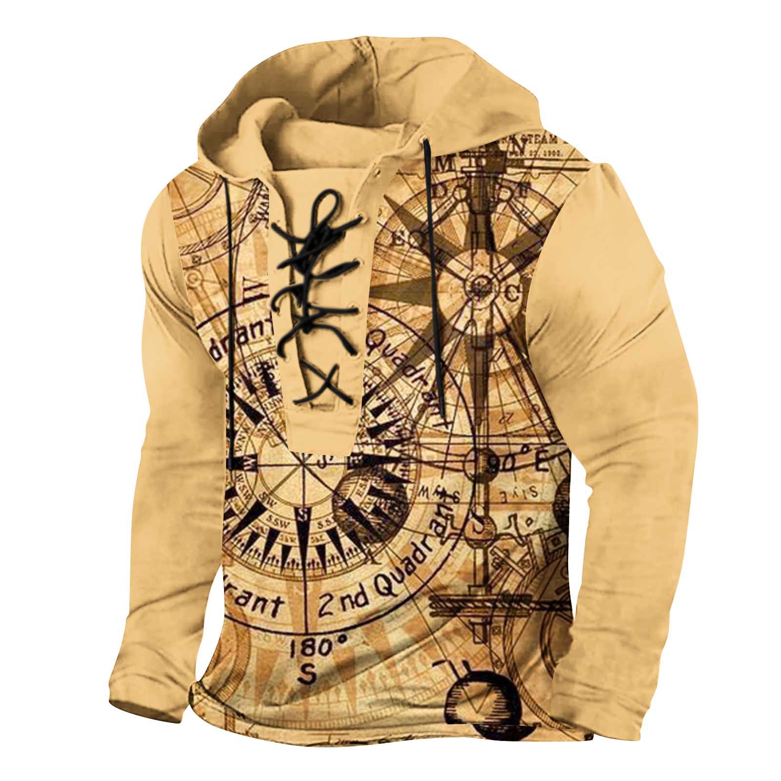 Главная страница > Зимняя трансграничная европейская и американская мужская экспортная ретро футболка с цифровой печатью на шнуровке большого размера с капюшоном и длинными рукавами, мужская одежда