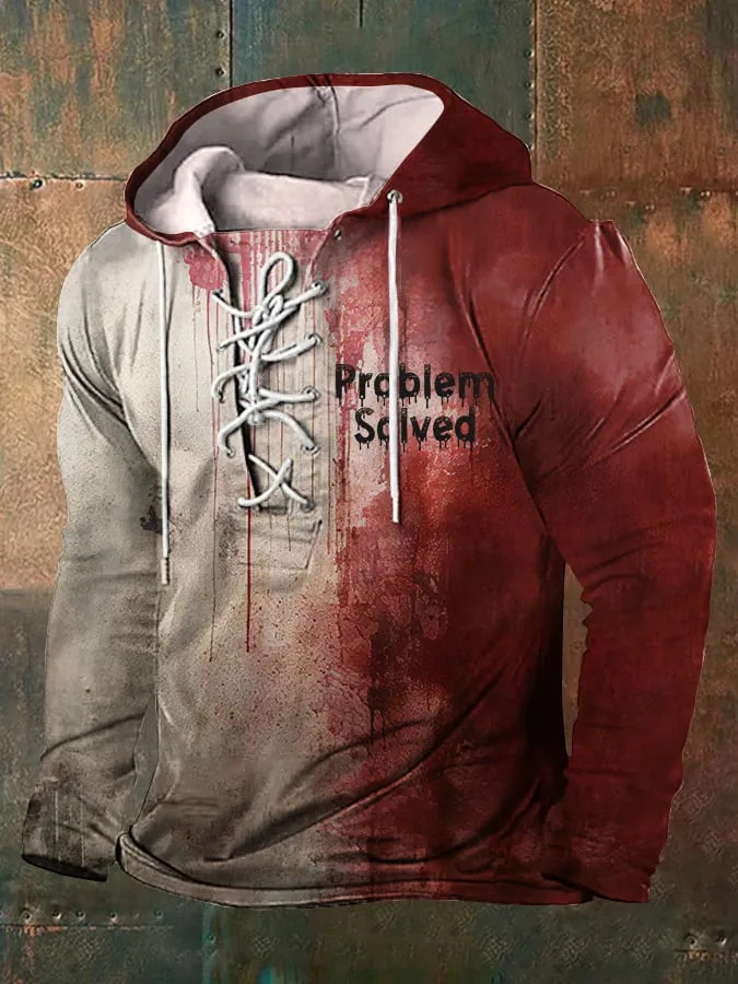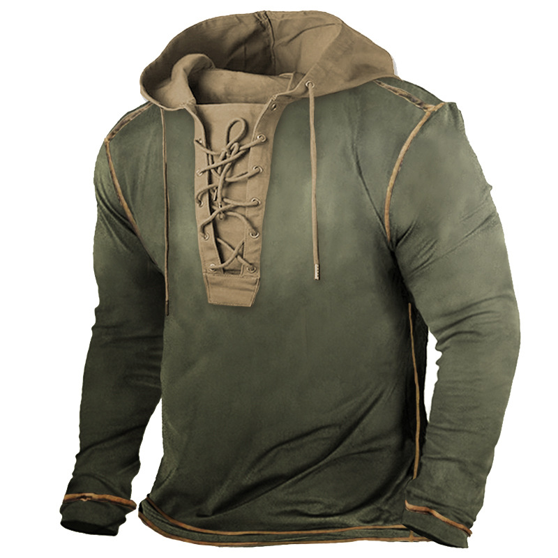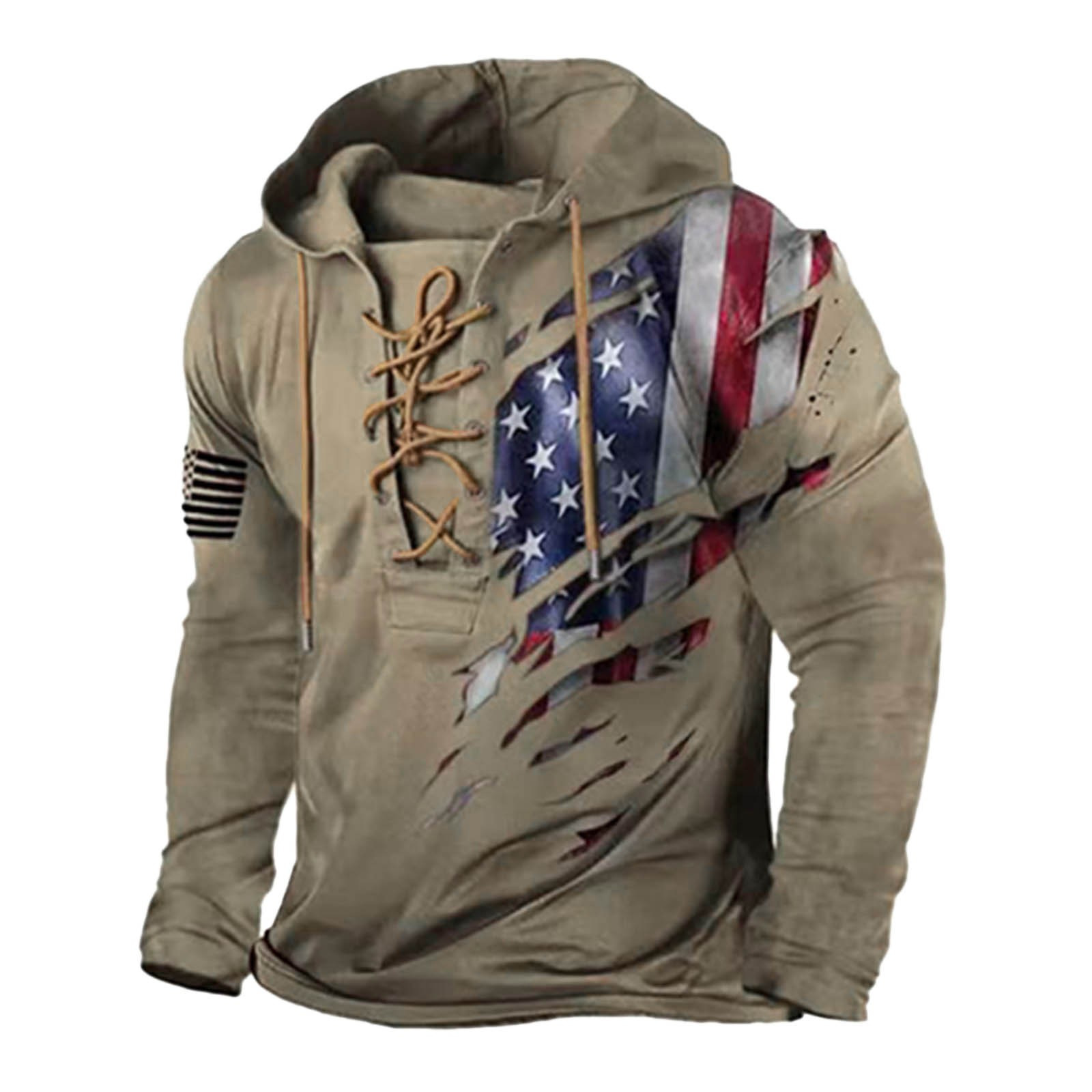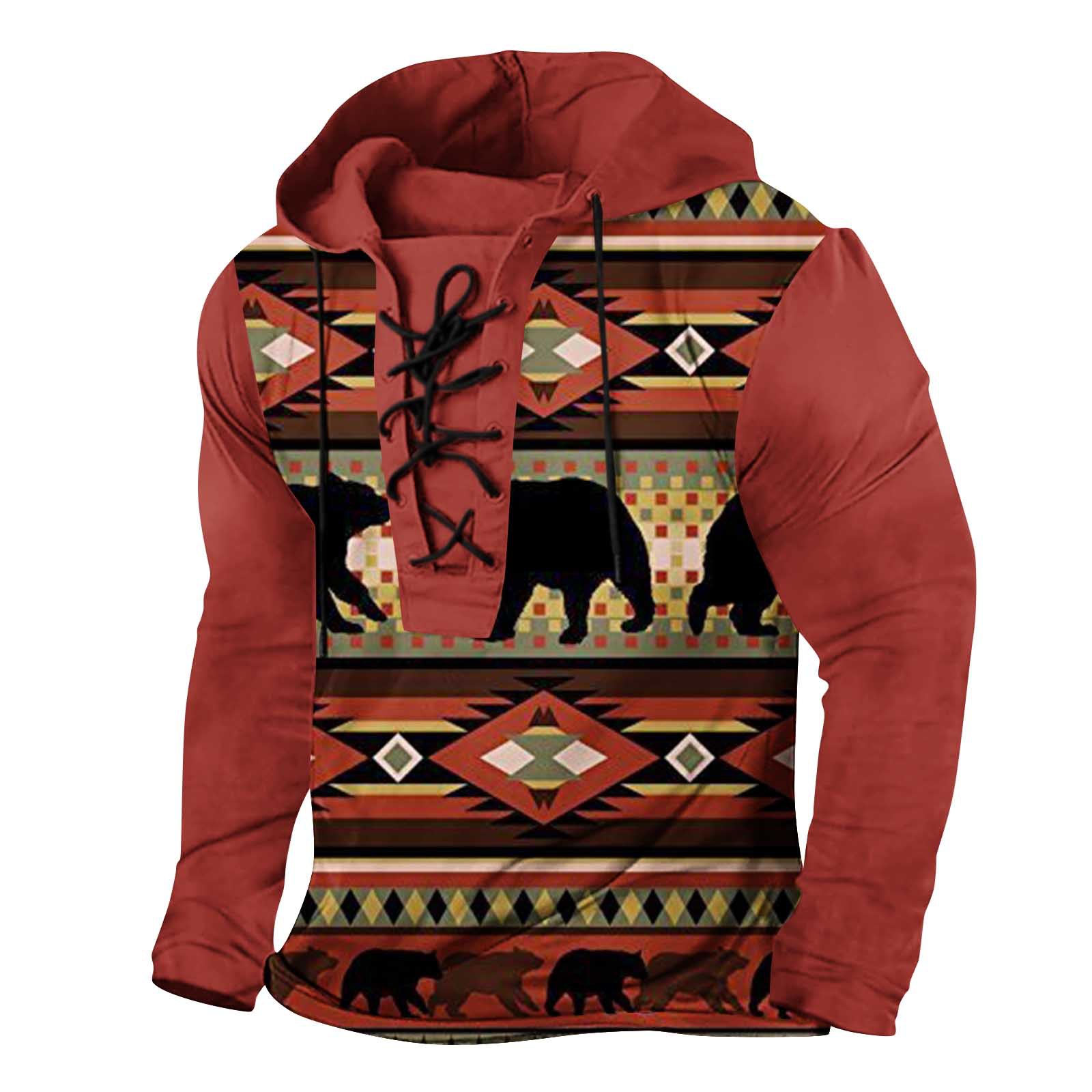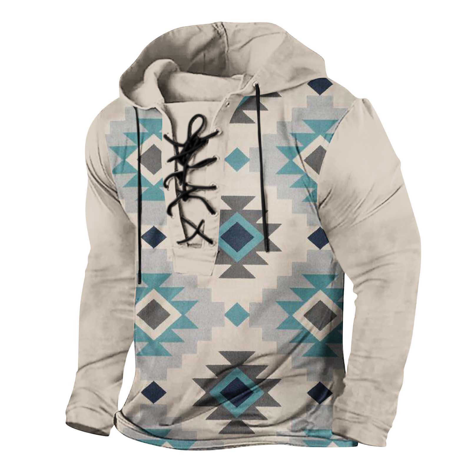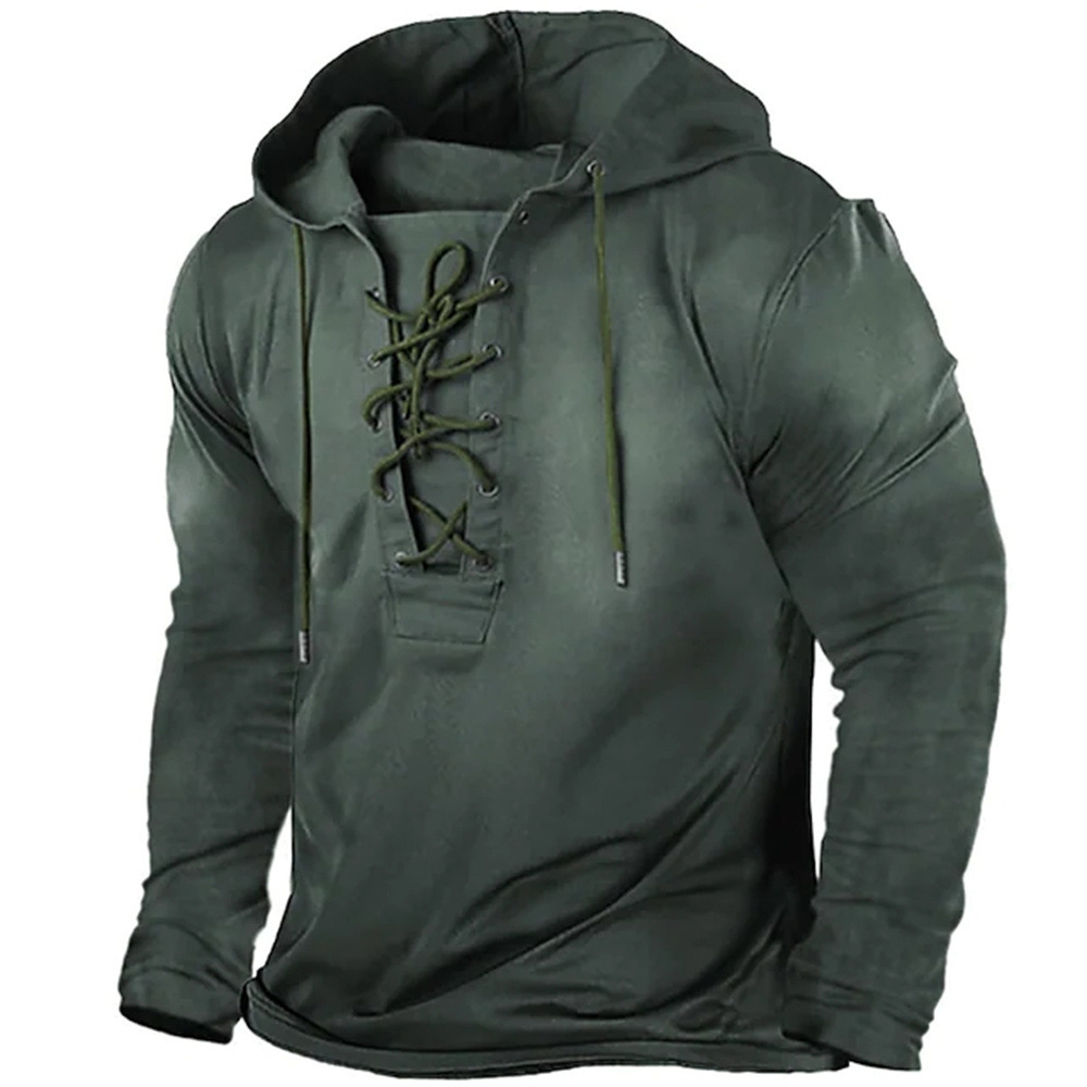 Главная страница > Зимняя трансграничная европейская и американская мужская экспортная ретро футболка с цифровой печатью на шнуровке большого размера с капюшоном и длинными рукавами, мужская одежда