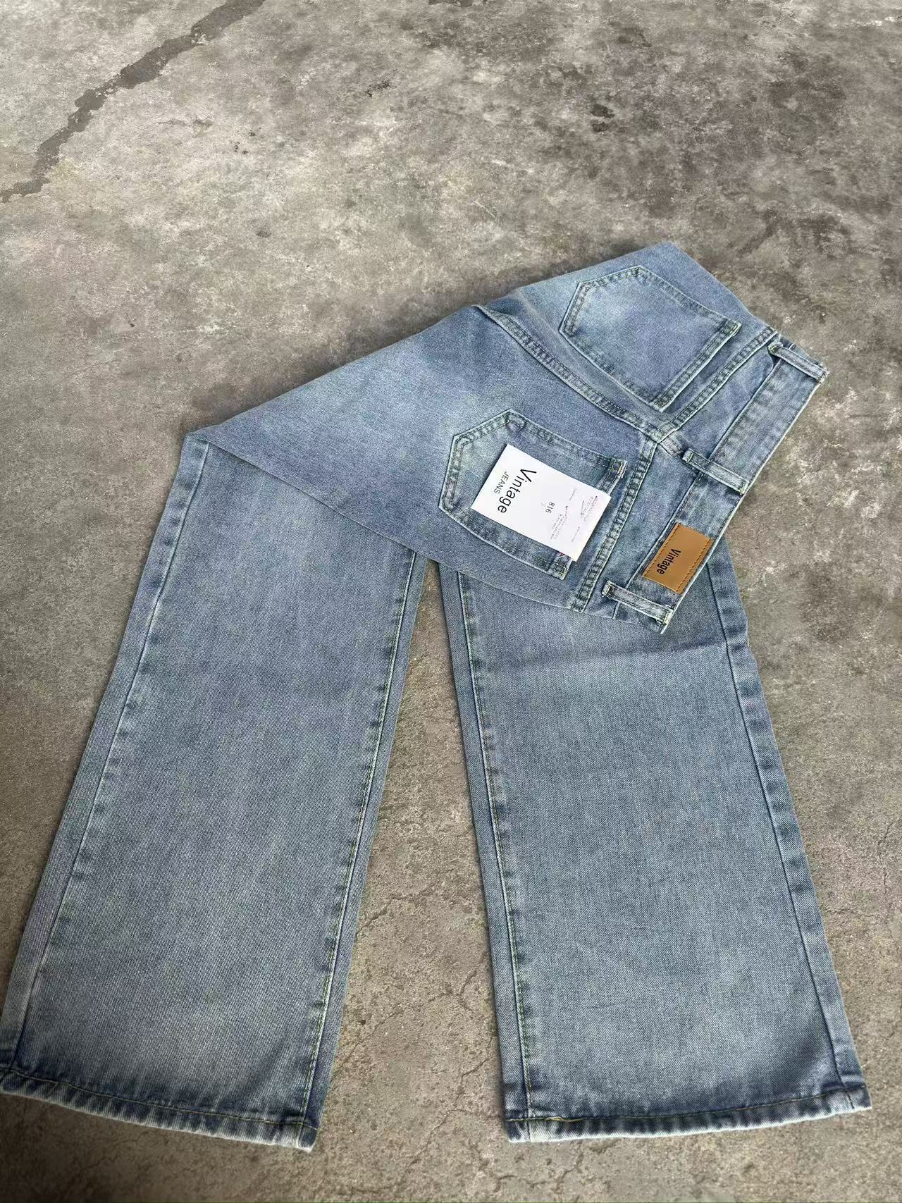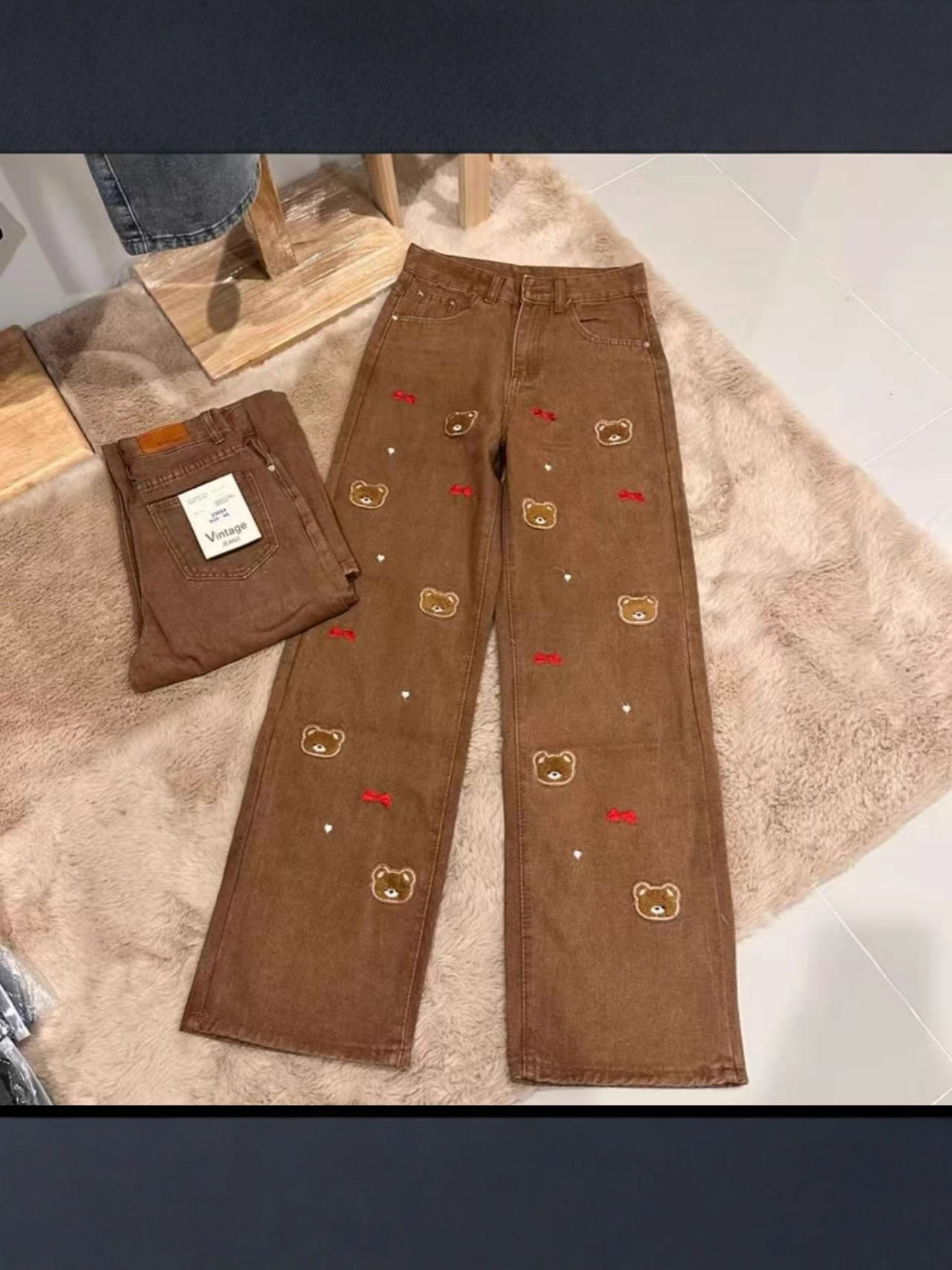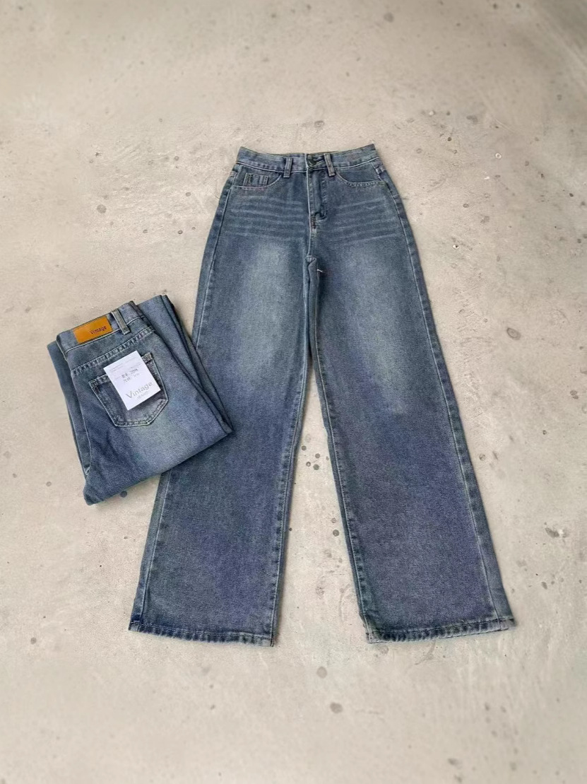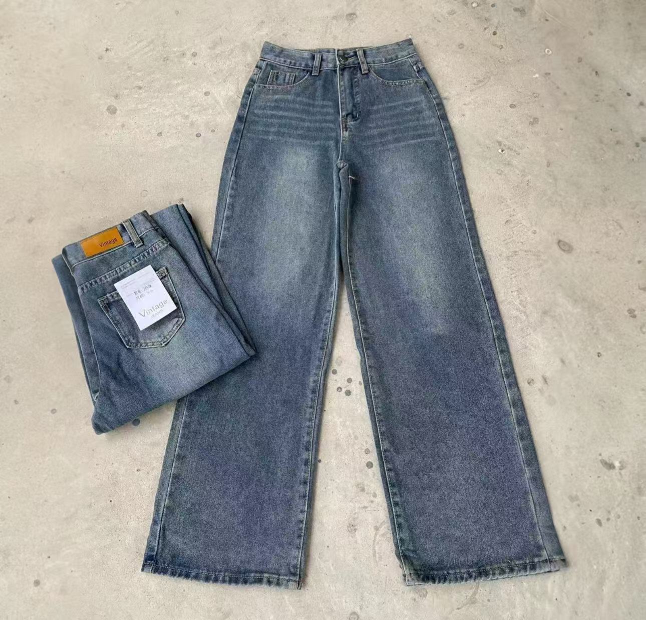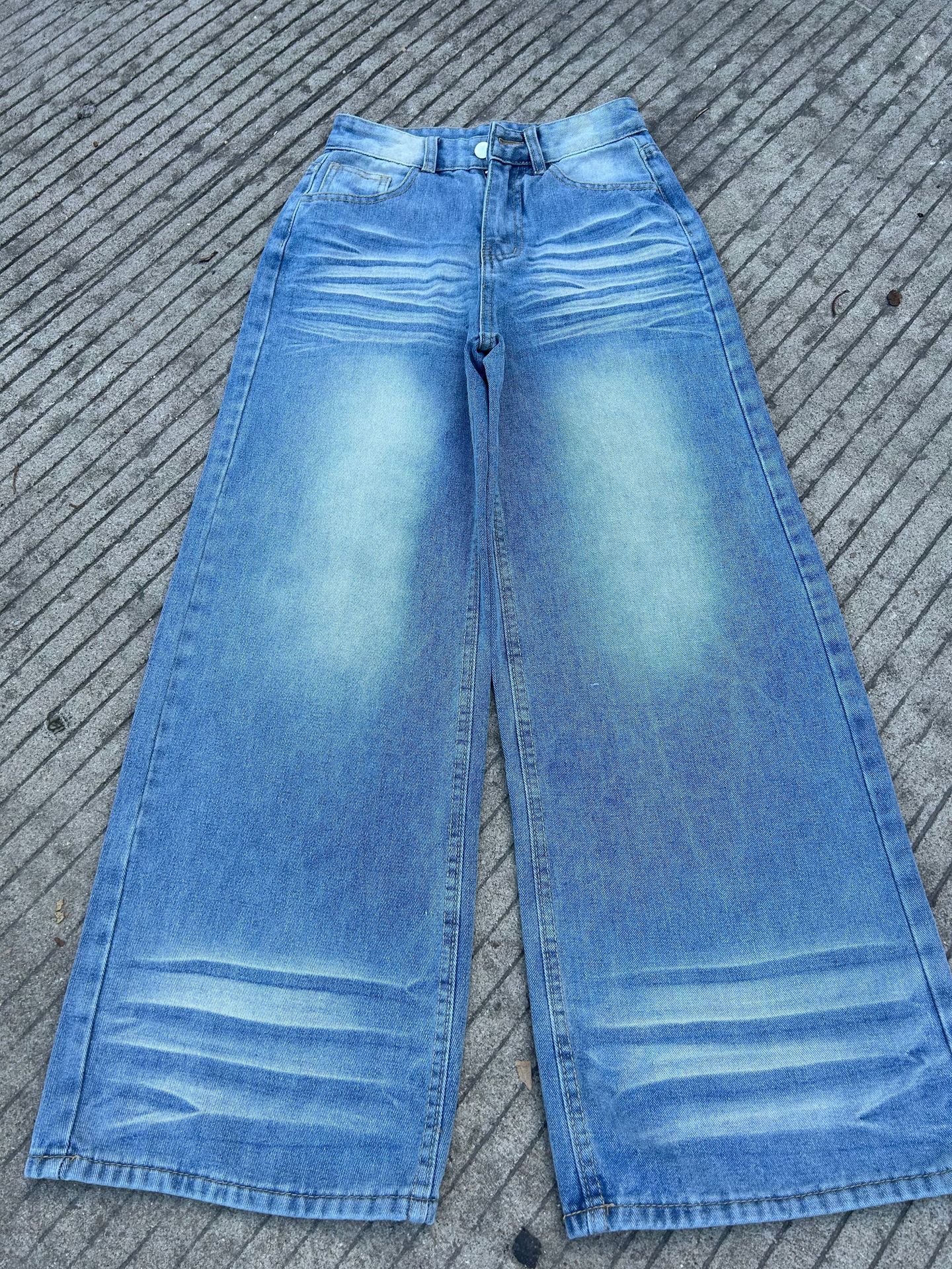 Главная страница > Широкие джинсы для женщин, летние с высокой талией, новинка 2025 года, ржаво-серые ретро-цилиндрические свободные брюки длиной до пола с микро-значками для женщин