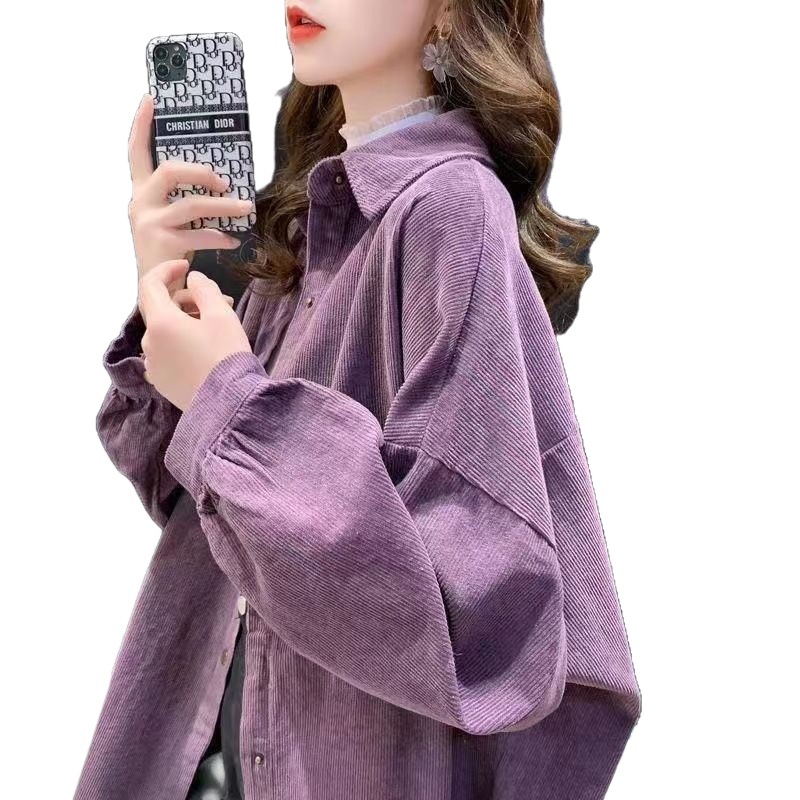 Главная страница > Вельветовая рубашка в стиле ретро, новая весенне-осенняя, с длинным рукавом, свободного кроя, повседневная, средней длины, женская верхняя одежда
