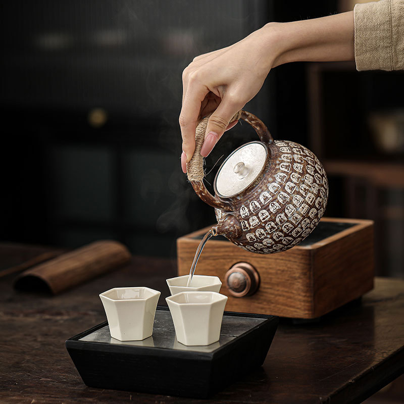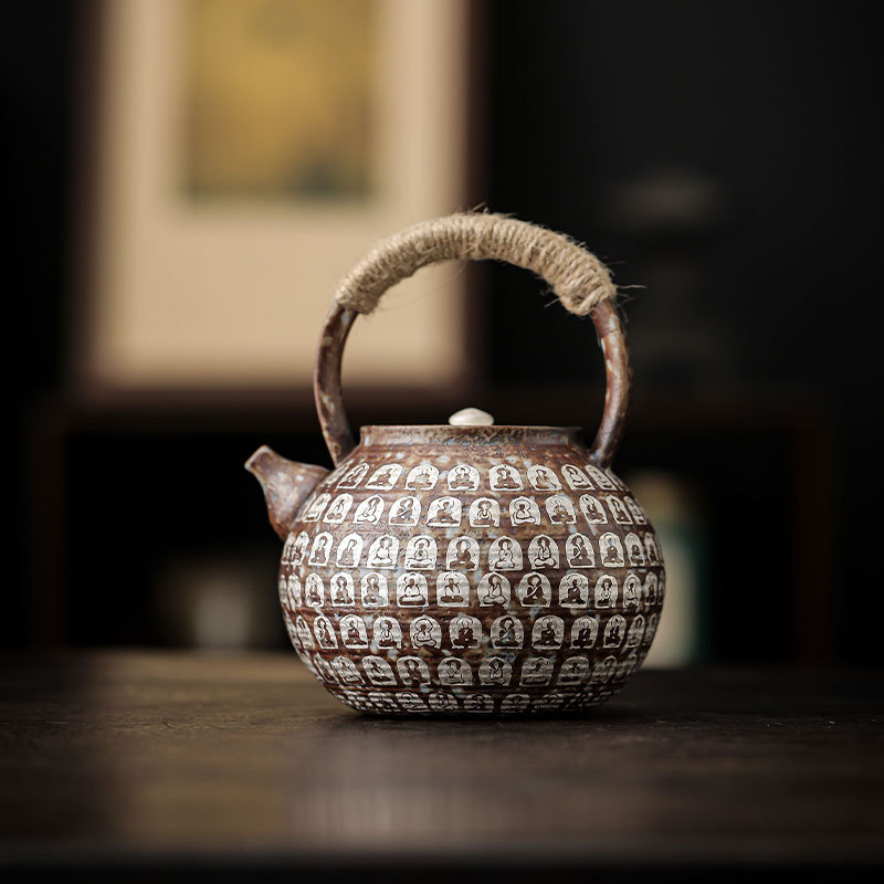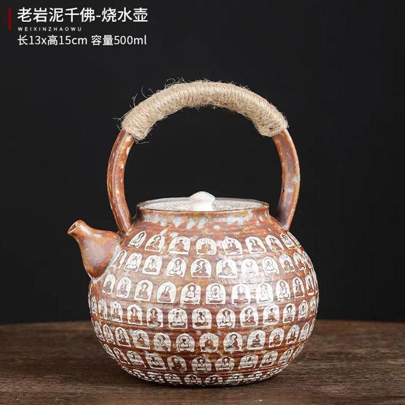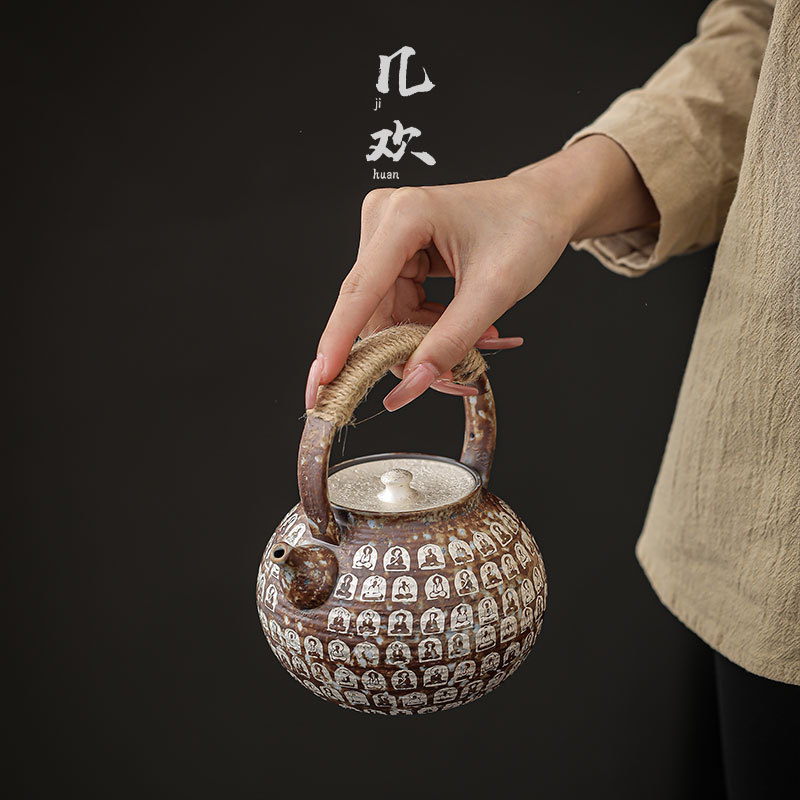 Главная страница > Jiuhuan Старая каменная грязь Серебряный чайник Будды бытовой китайский чайник луч горшок кунг-фу чайный сервиз керамический чайник