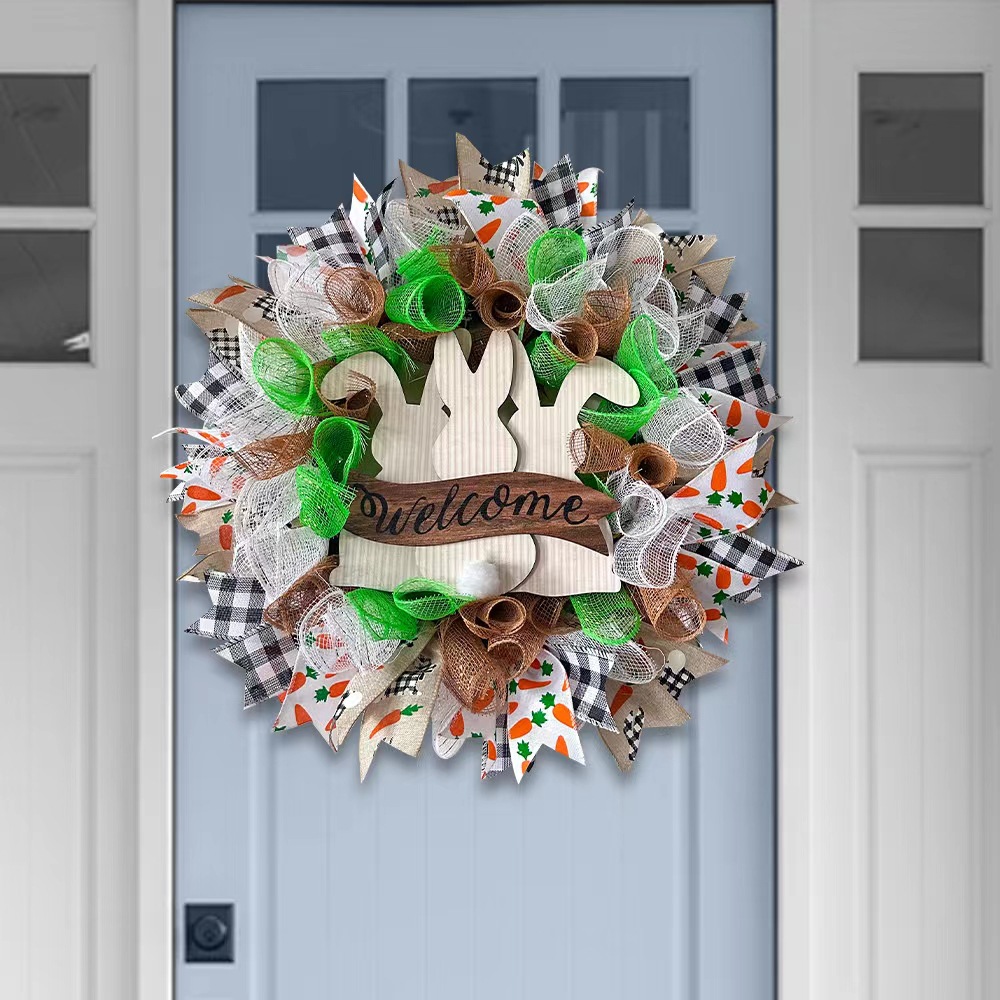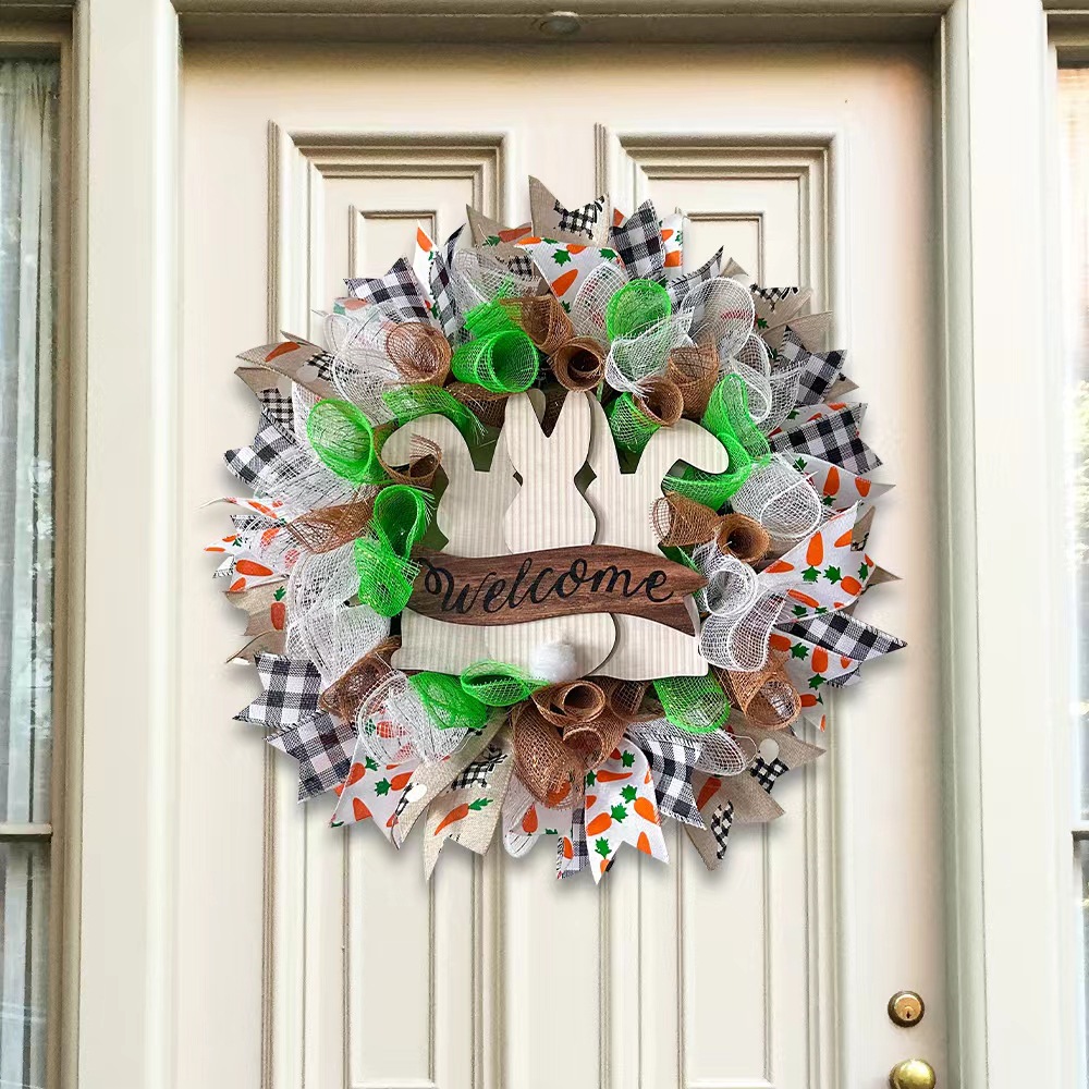 Главная страница > 2024 Новый Пасхальный кролик лента гирлянда украшение входной двери гирлянда фермерский дом дверь во двор висит