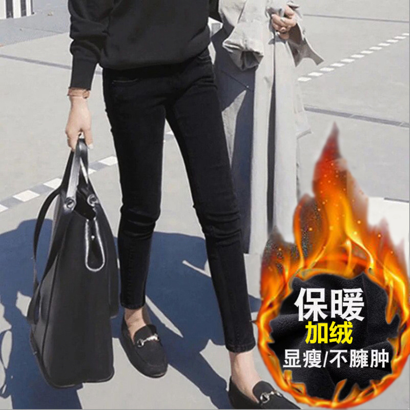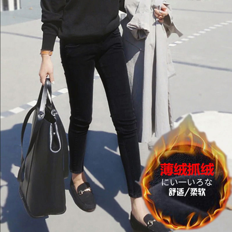 Главная страница > Женские утепленные черные джинсы-скинни на флисе, осенне-зимние, с высокой талией, эластичные, облегающие, укороченные, зауженные брюки-карандаш для миниатюрных женщин.
