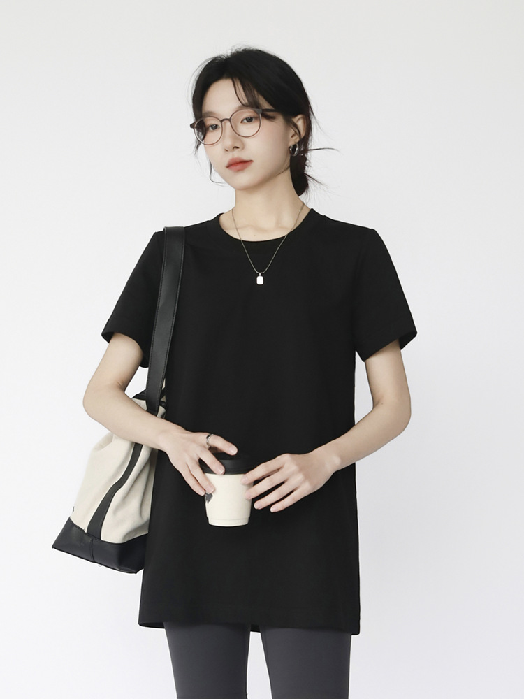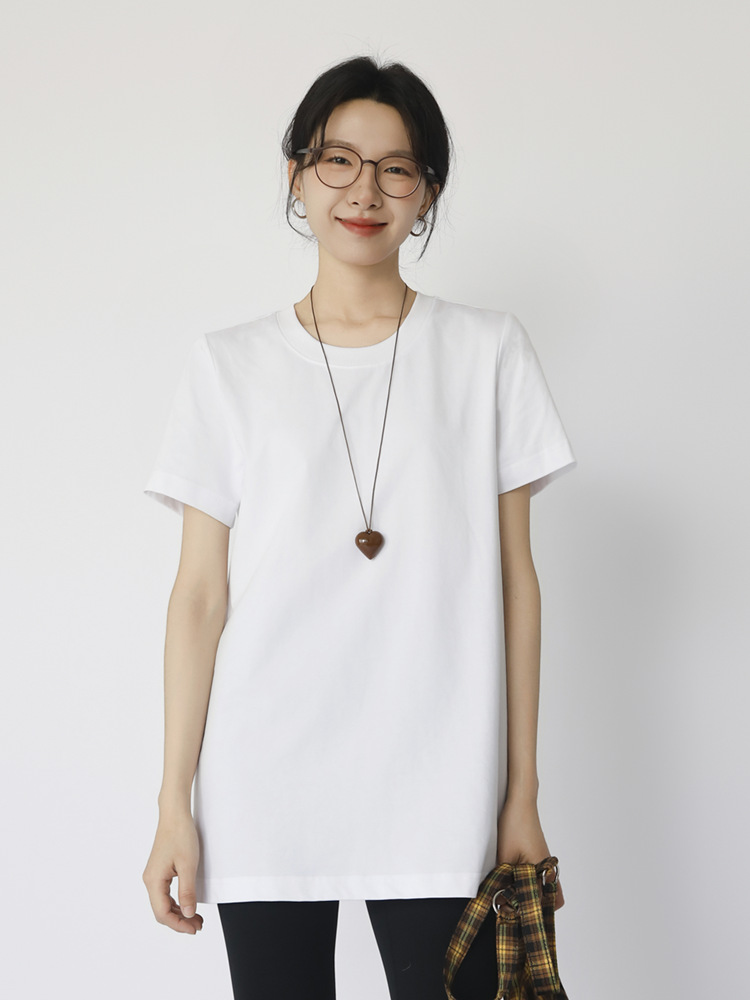 Главная страница > Длинная футболка, покрывающий задницу, женский с короткими рукавами, с круглым вырезом, случайный простой свободный, тонкая и тонкая рубашка средней и длинной нижней рубашки