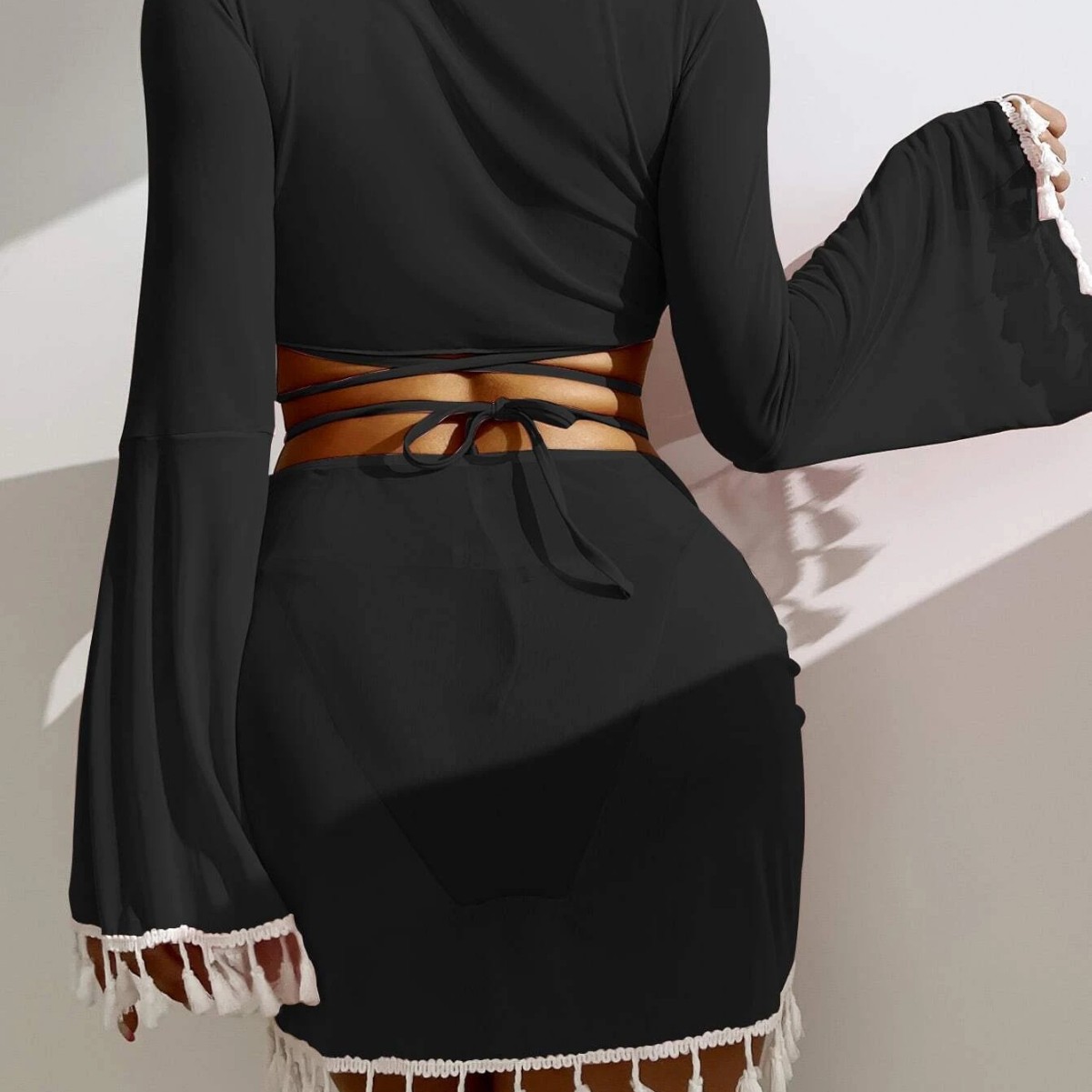 Главная страница > 2025 Европейский и американский экспортный купальник, женский разделенный комплект из трех или четырех предметов, однотонный кружевной кружевной комплект с длинными рукавами, популярная трансграничная одежда