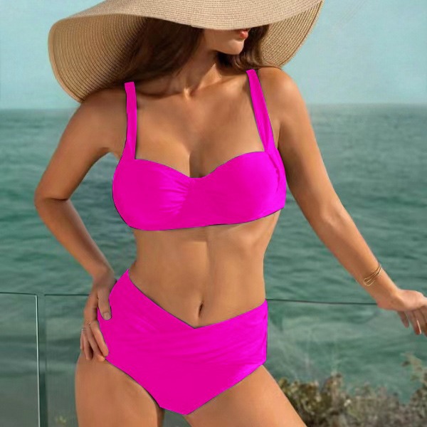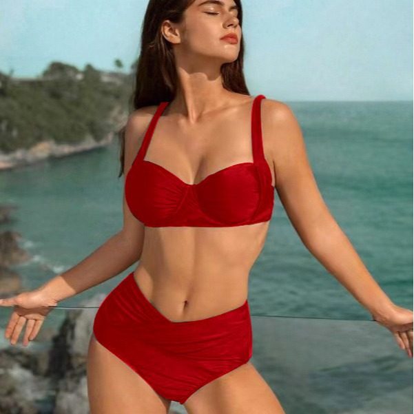 Новинка 2025: сексуальный бикини с эффектом пуш-ап, на косточках, в европейском и американском стиле, с высокой талией, драпировкой и облегающим кроем.