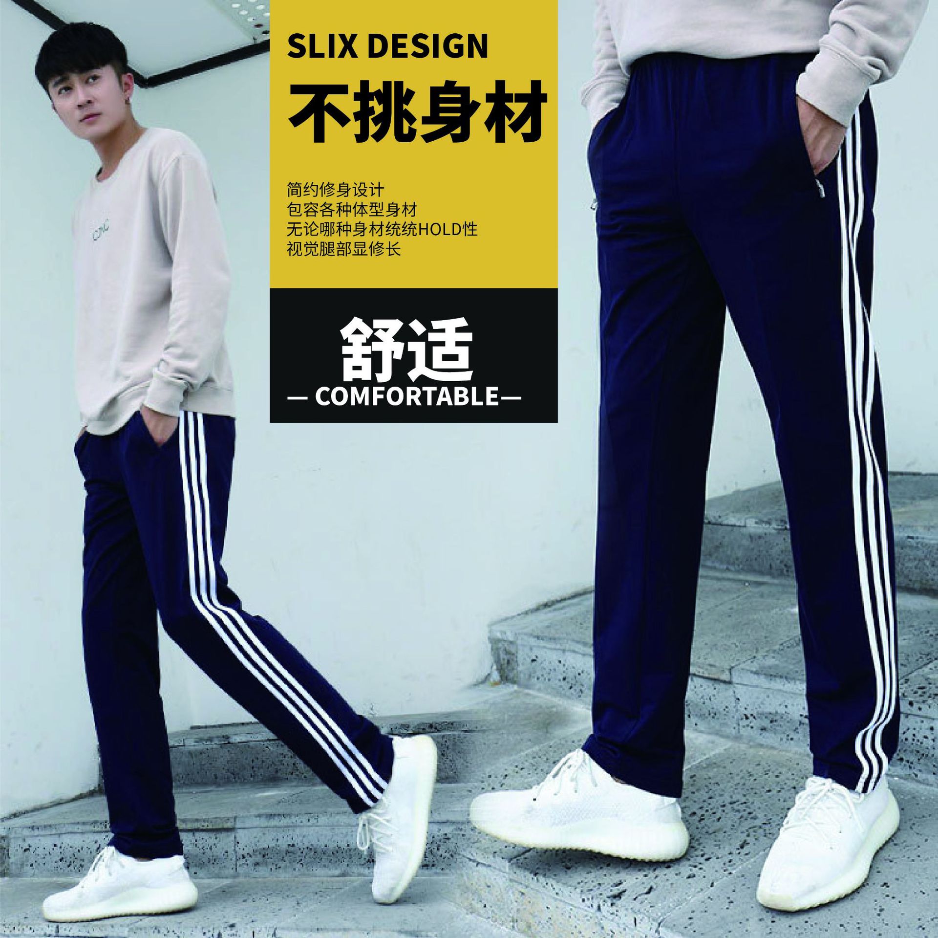 Главная страница > Мужские спортивные штаны Мужские повседневные брюки, хлопковые прямые свободные спортивные штаны больших размеров с тремя полосами, студенческие спортивные длинные брюки