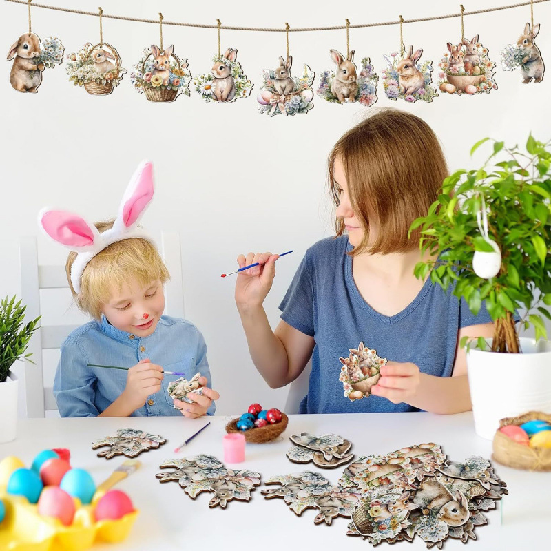 Главная страница > Пасхальный кролик украшения Пасхальный деревянный щепа декоративное дерево листинг с веревкой для вечеринки в семейном доме в помещении