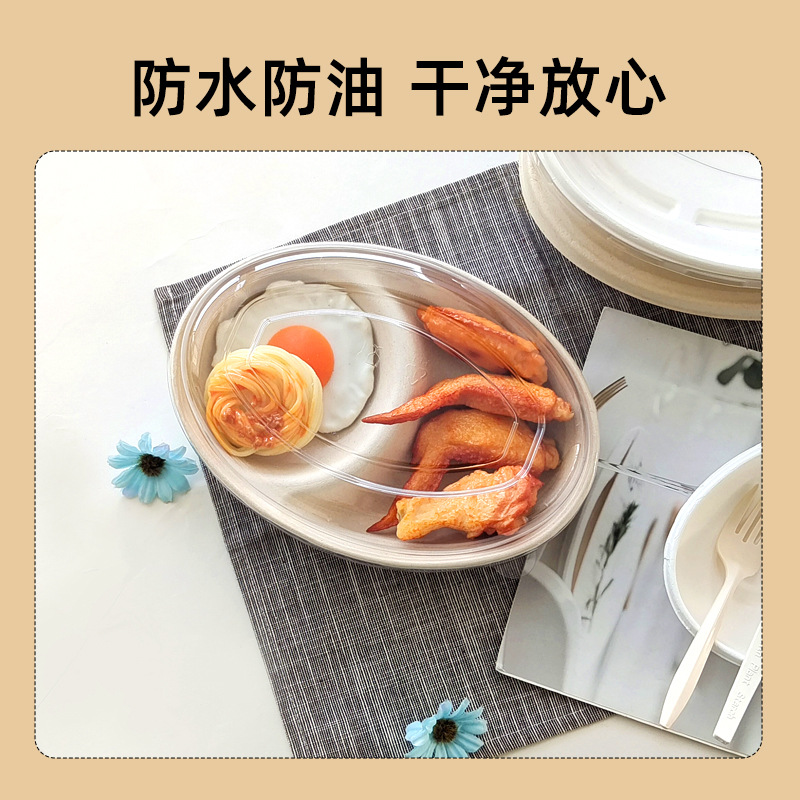 Главная страница > Одноразовый разлагаемый эллиптический ланч-бокс 850ml сахарный тростник овальный миска овощной салат с крышкой и упакованной коробкой для бенто