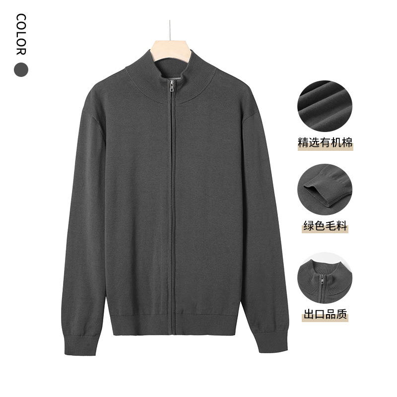Главная страница > Европейский и американский стиль, однотонный, 100% хлопок, повседневный кардиган с воротником-стойкой на молнии, зимний модный универсальный мужской свитер-куртка
