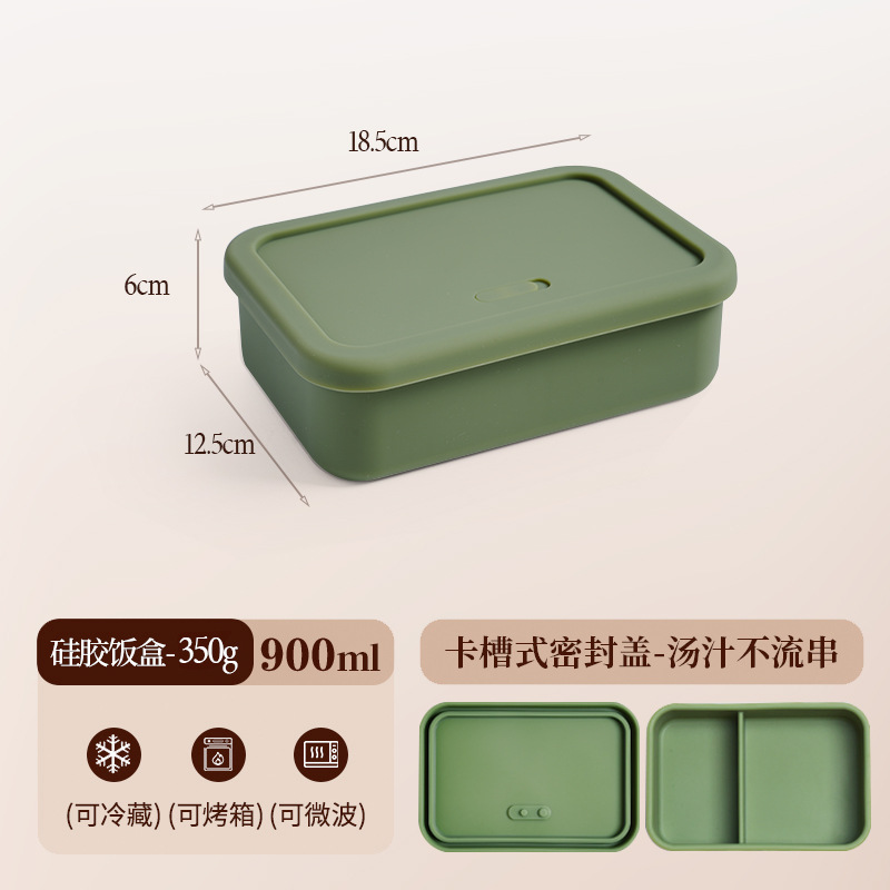 Силиконовый ланч-бокс с двумя отделениями и дышащими отверстиями --- зеленый