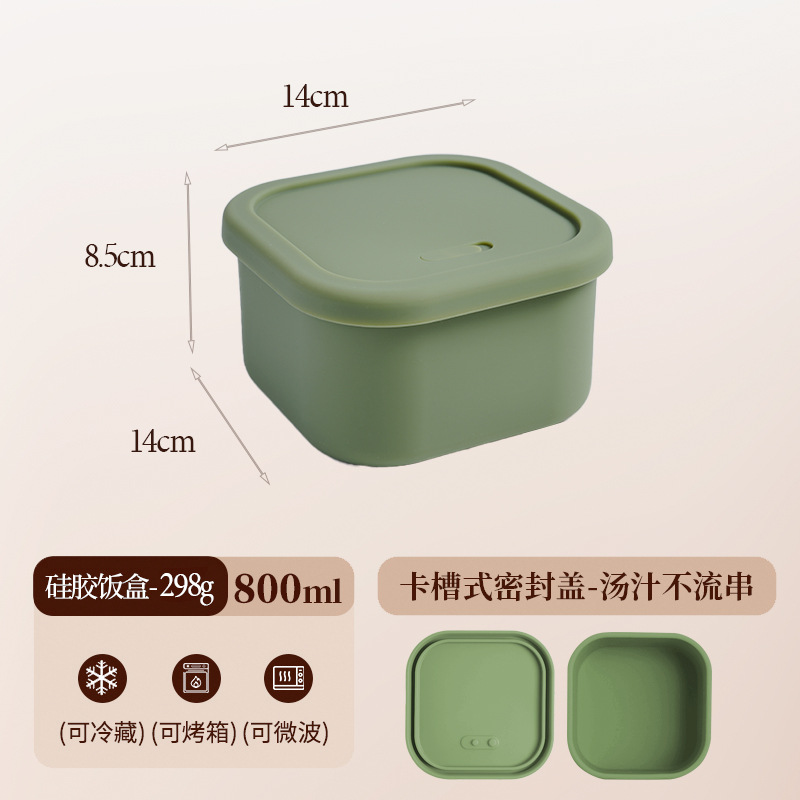 Квадратный силиконовый ланч-бокс с дышащим отверстием --- зеленый
