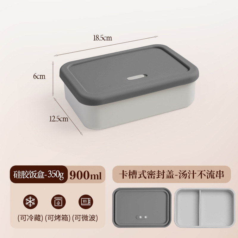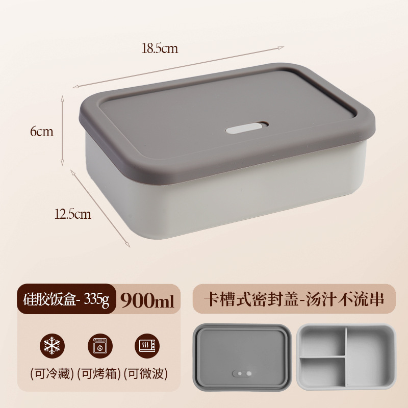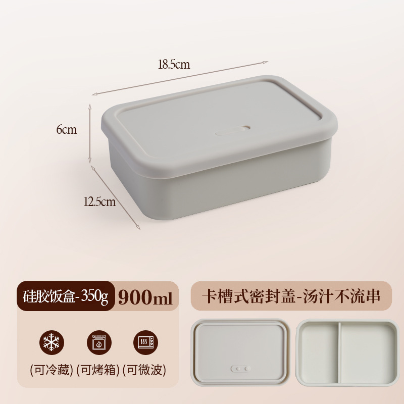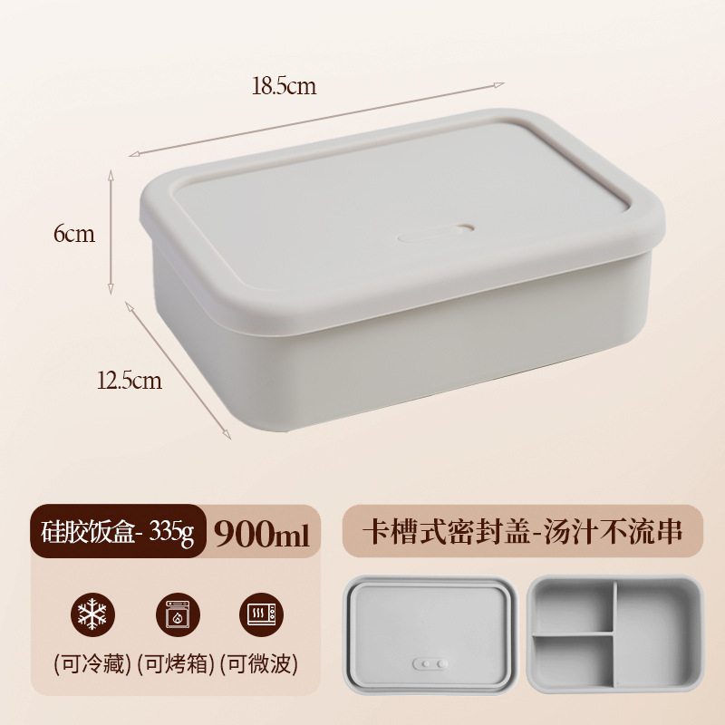 Силиконовый ланч-бокс с двумя отделениями и дышащими отверстиями — серый, бежевый и белый.