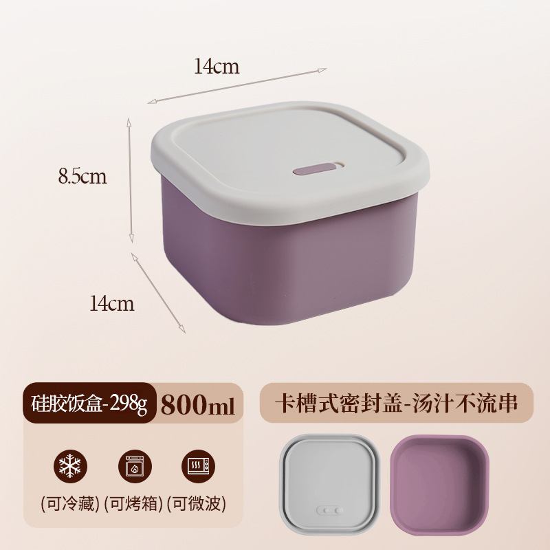Квадратный силиконовый ланч-бокс с дышащим отверстием --- темно-фиолетовый