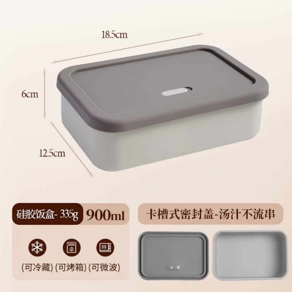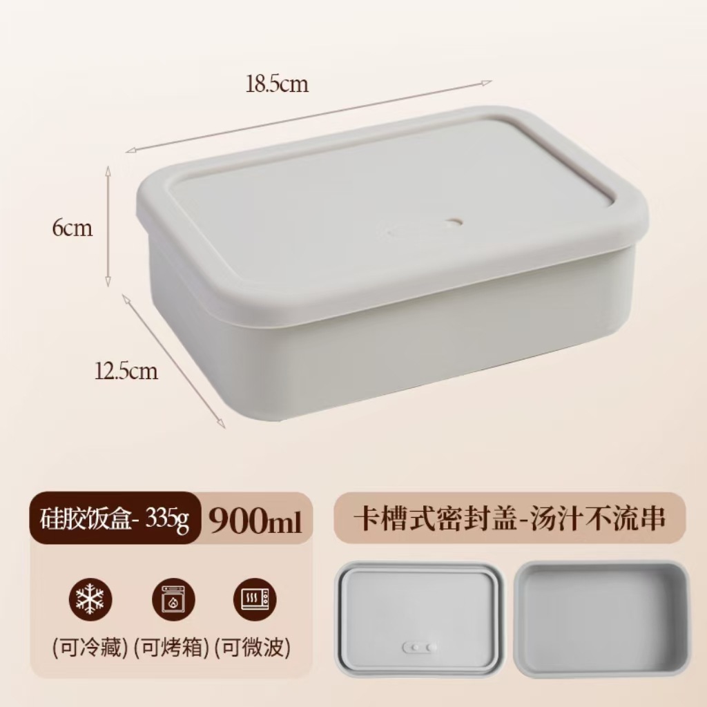 Силиконовый ланч-бокс с дышащими отверстиями без отделений --- серый, бежевый и белый.