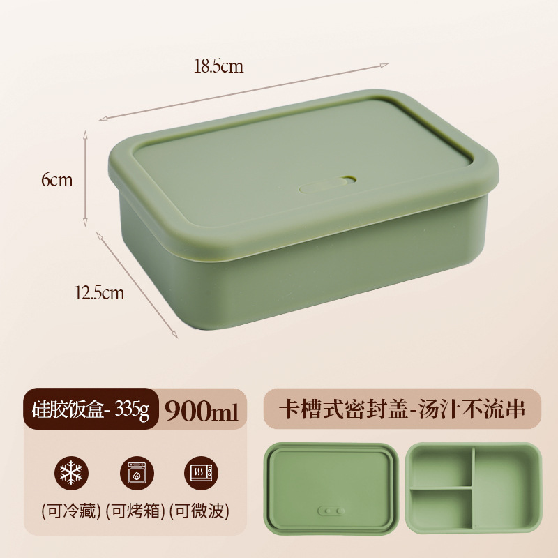 Силиконовый ланч-бокс с тремя отделениями и дышащими отверстиями --- зеленый