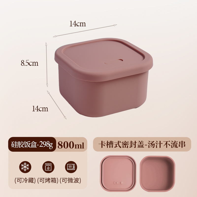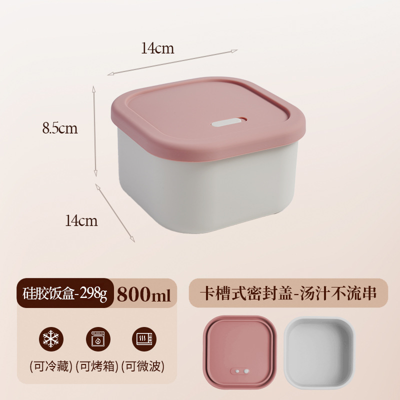 Квадратный силиконовый ланч-бокс с дышащими отверстиями --- темно-розовый и кремово-белый.
