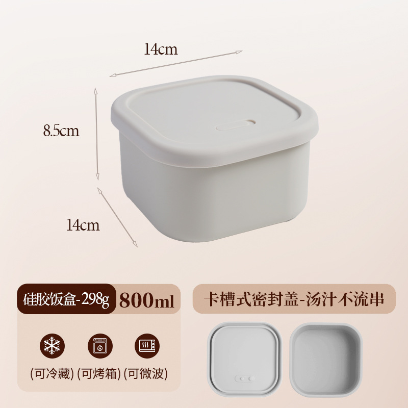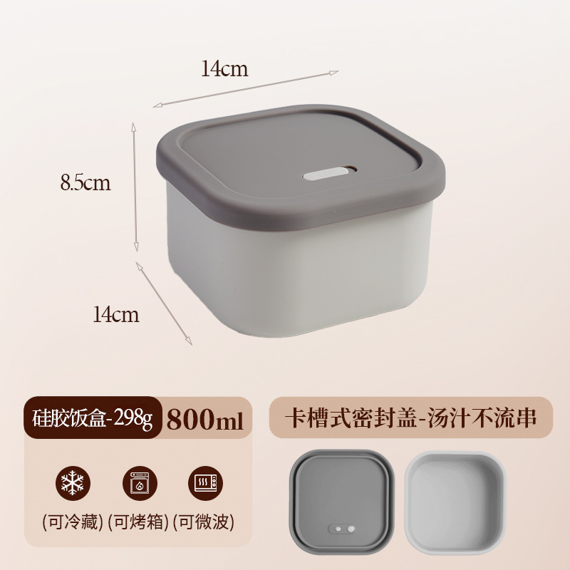 Квадратный силиконовый ланч-бокс с дышащими отверстиями --- серый, бежевый и белый