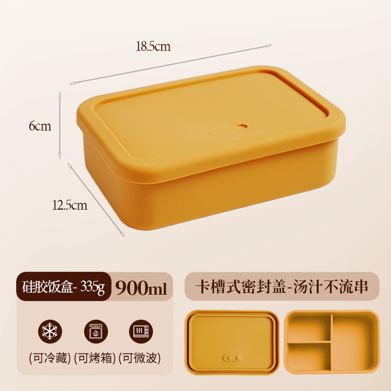 Силиконовый ланч-бокс с тремя отделениями и дышащими отверстиями --- желтый
