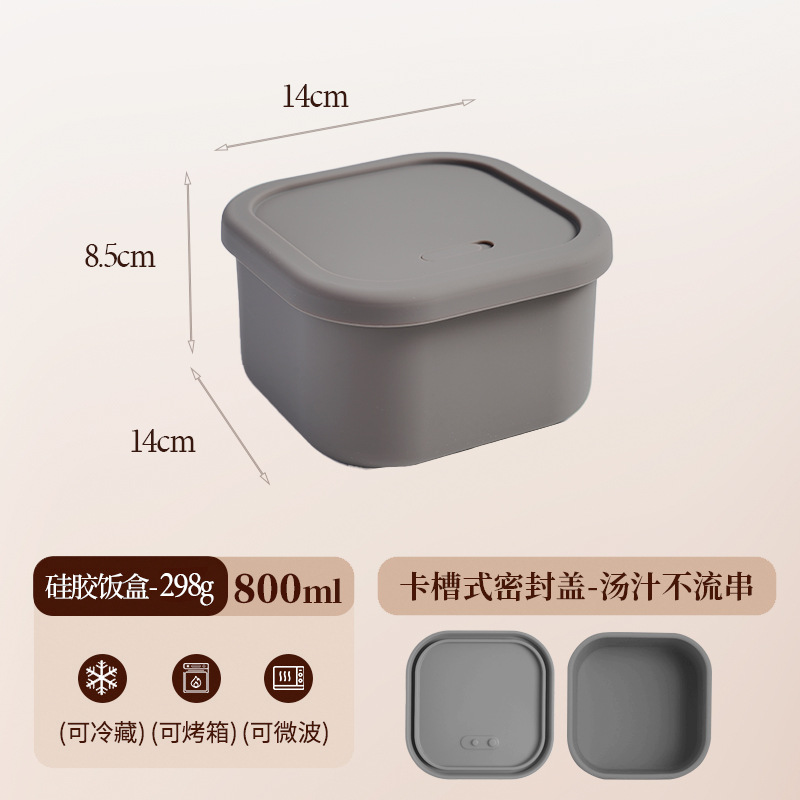 Квадратный силиконовый ланч-бокс с дышащим отверстием --- серый