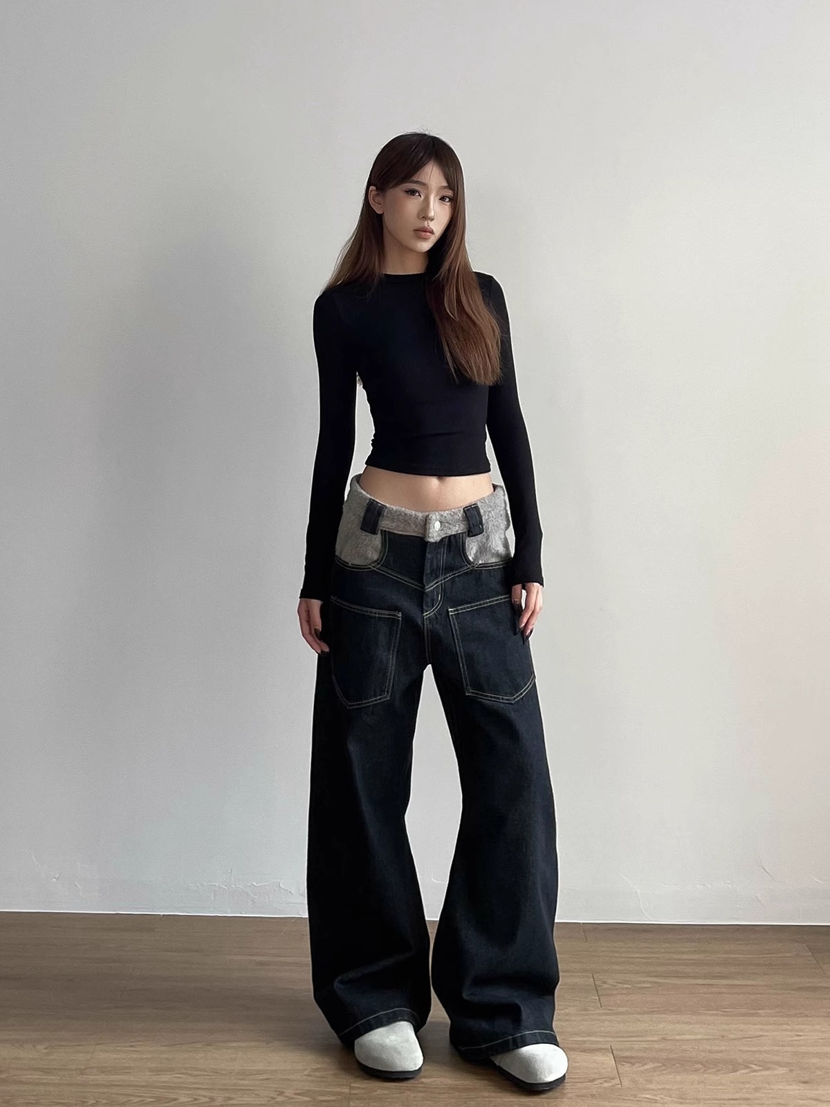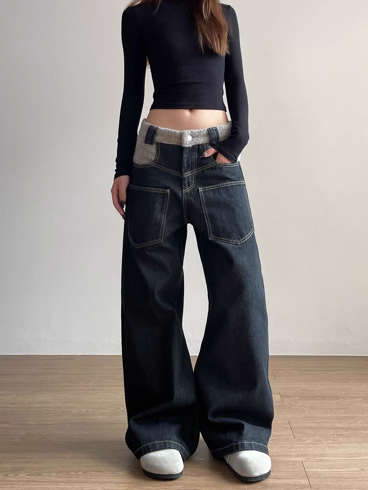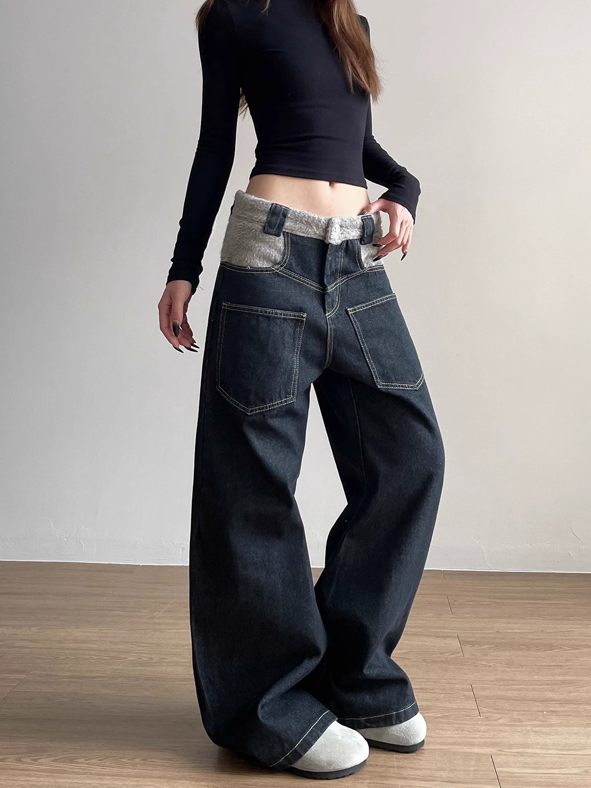 Главная страница > Нишевые штаны с шитым дизайном джинсы женские американские высокие улицы свободные изогнутые мачете микро-рога длинные брюки