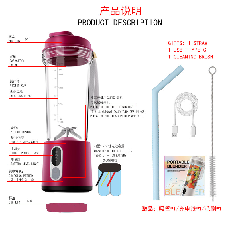 Главная страница > Портативный электрический блендер большой емкости для приготовления сока на выезде, перезаряжаемый, для свежевыжатого сока