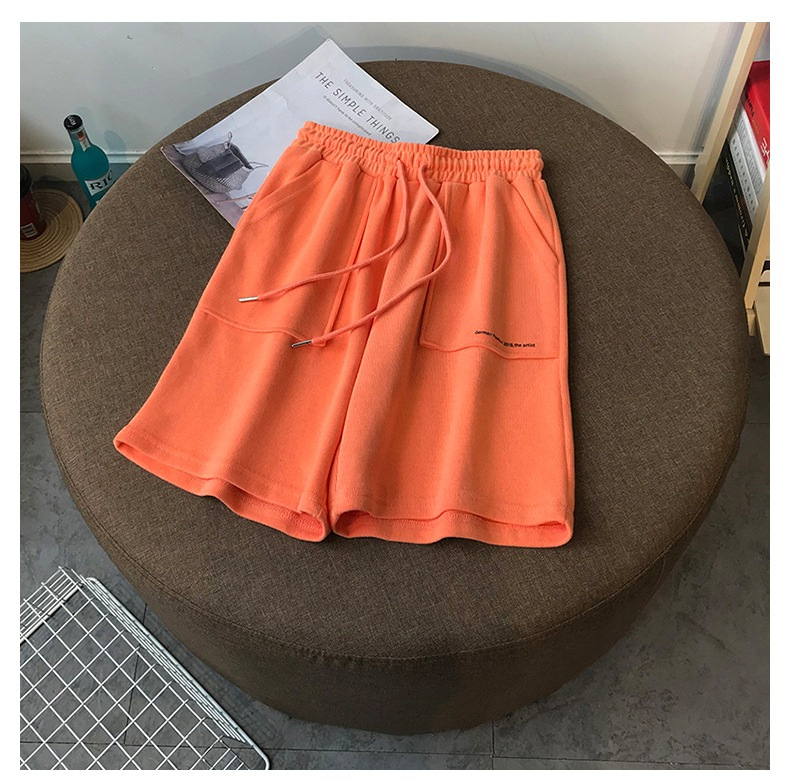 Главная страница > Оранжево-красные спортивные шорты женского лета новая свободная прямая ножка с высокой талией шнурок тонких повседневных брюк оптом