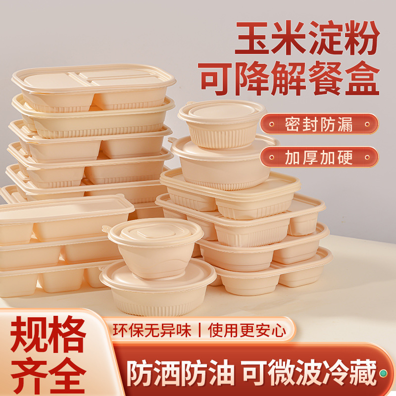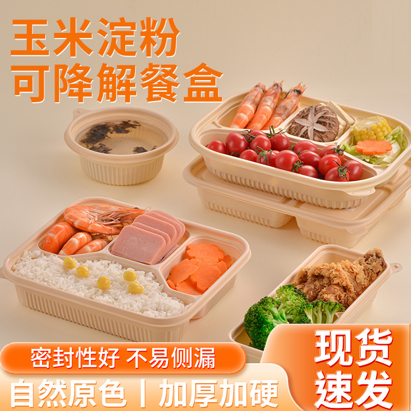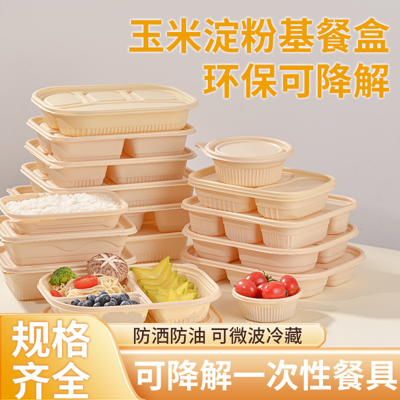 Экологически чистый и биоразлагаемый одноразовый ланч-бокс из кукурузного крахмала с отделениями и крышкой для легких закусок и ланч-боксов для еды на вынос.
