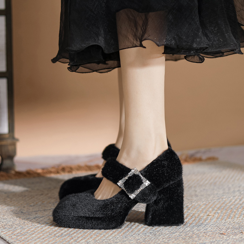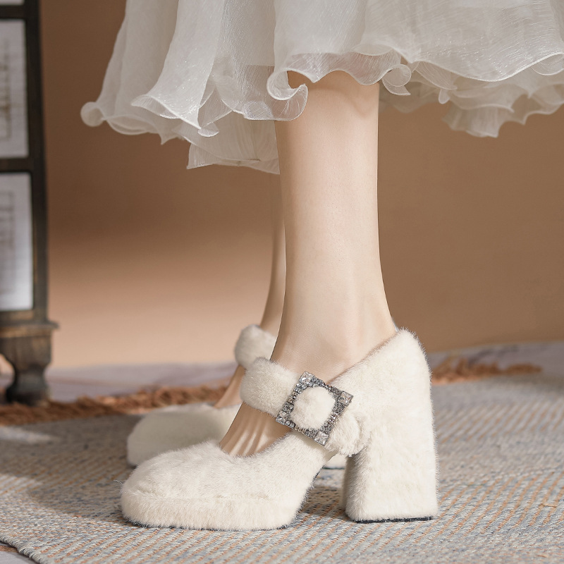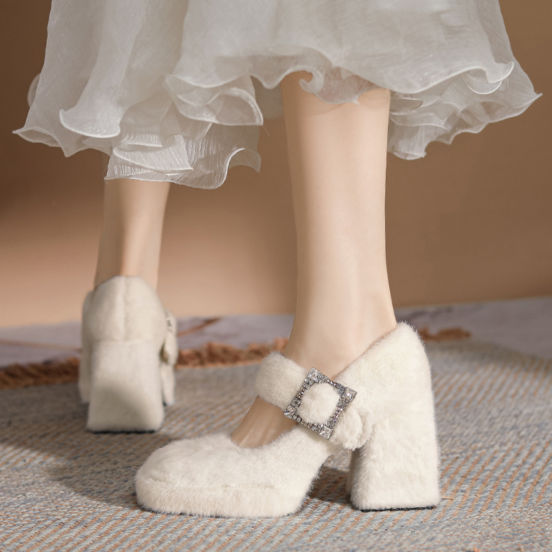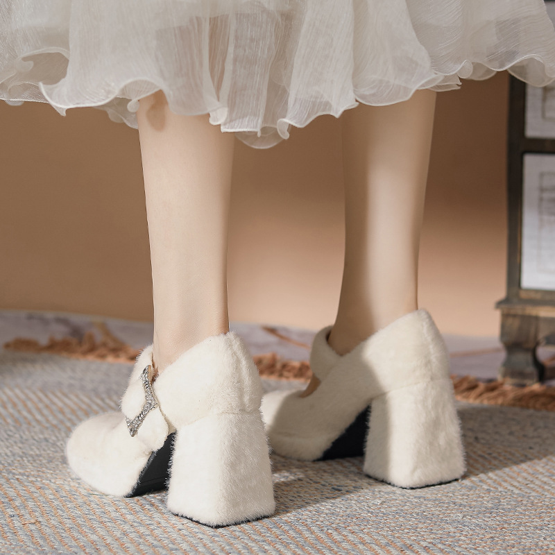 Главная страница > (Спот) Белые меховые туфли Мэри Джейн носят зимой