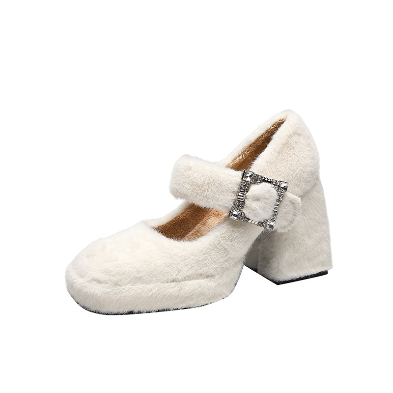 (Спот) Белые меховые туфли Мэри Джейн носят зимой