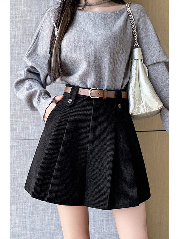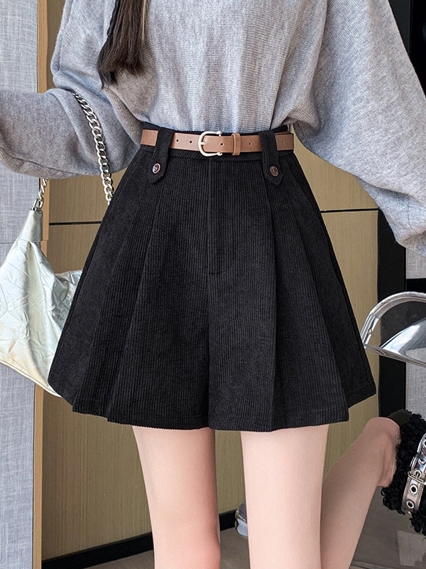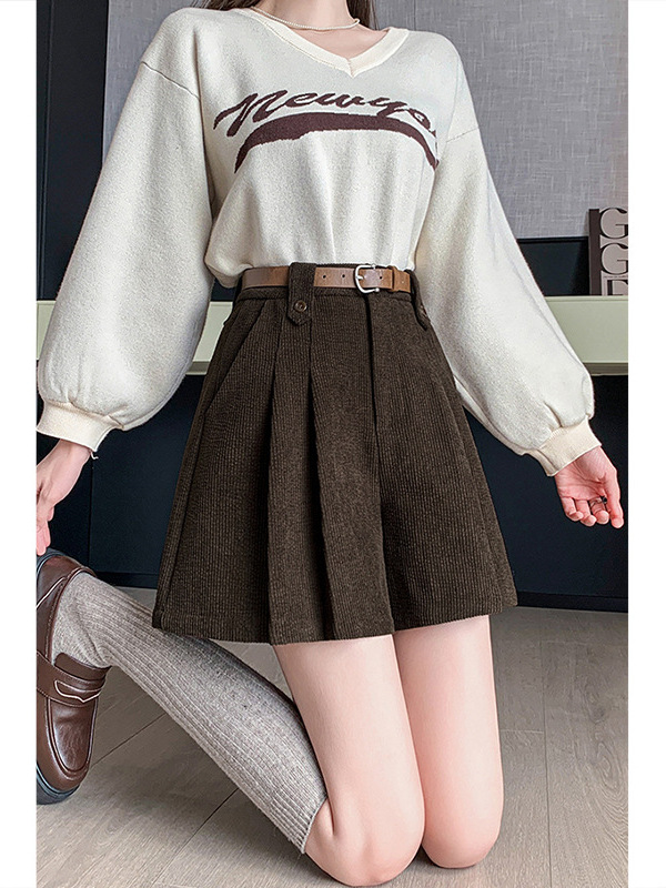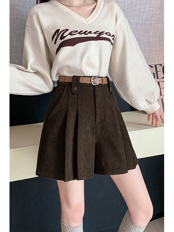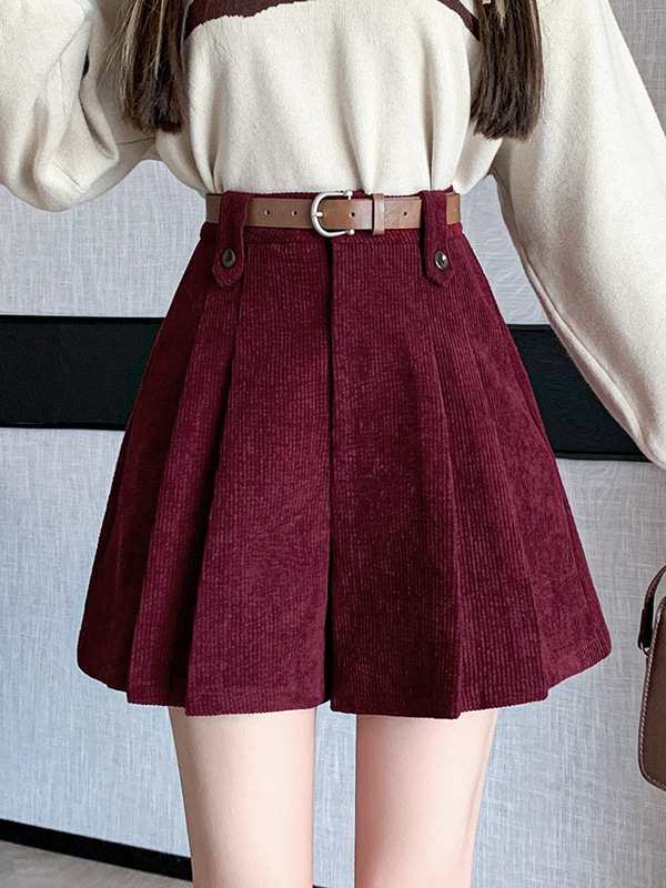 Главная страница > Анкора красные плиссированные шорты женские осенние и зимние новые вельветовые брюки повседневные брюки с высокой талией