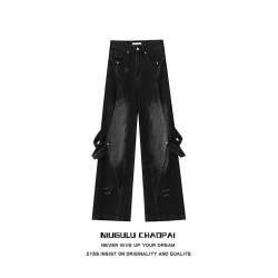 Главная страница > 24-летние рваные джинсы в стиле ретро, мужские на весну и осень, новые американские свободные расклешенные брюки, стираные повседневные trousers-AK006