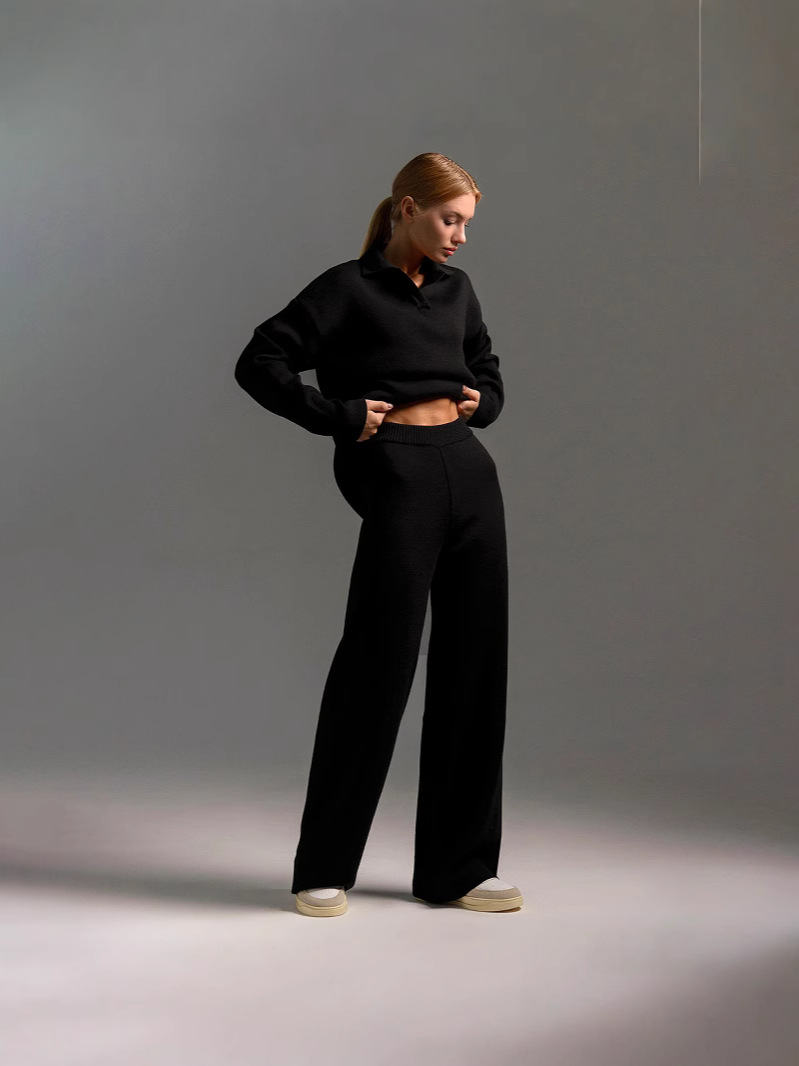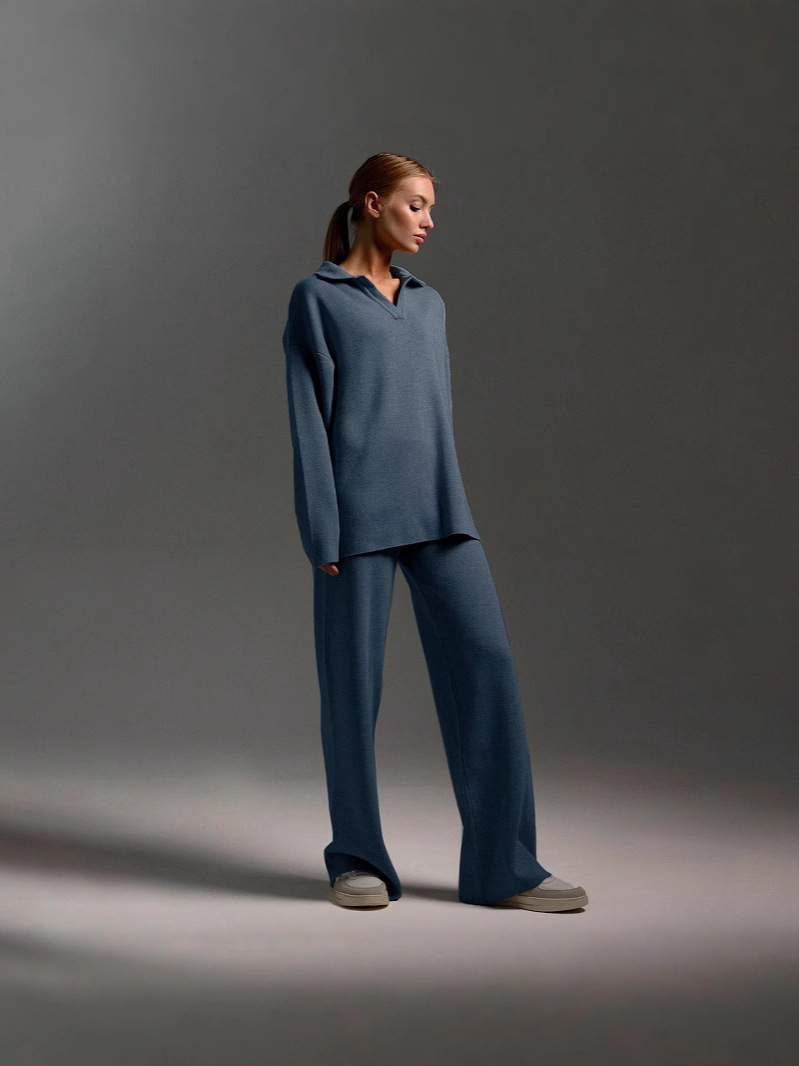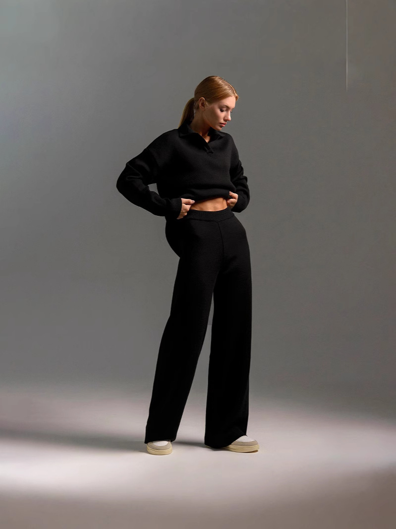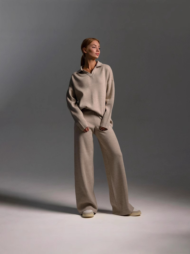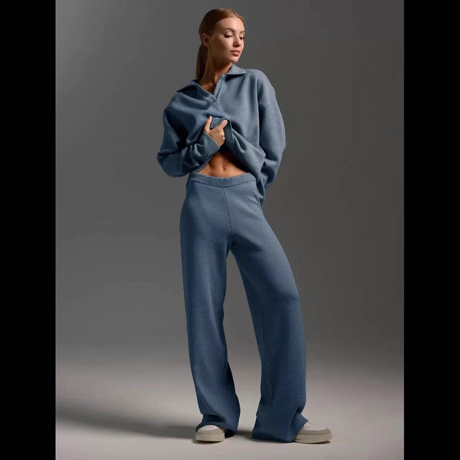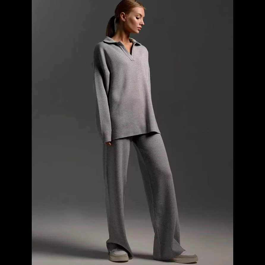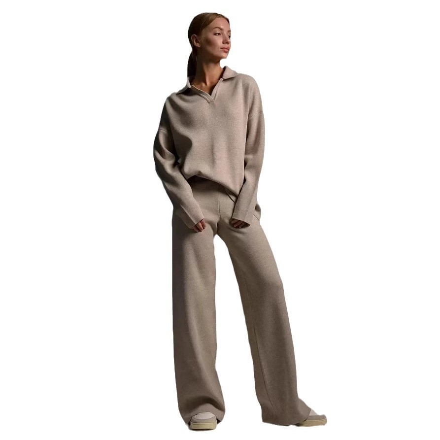 Трансграничный трикотажный костюм европейский и американский осенний и зимний свитер набор трикотажный свитер с воротником Polo