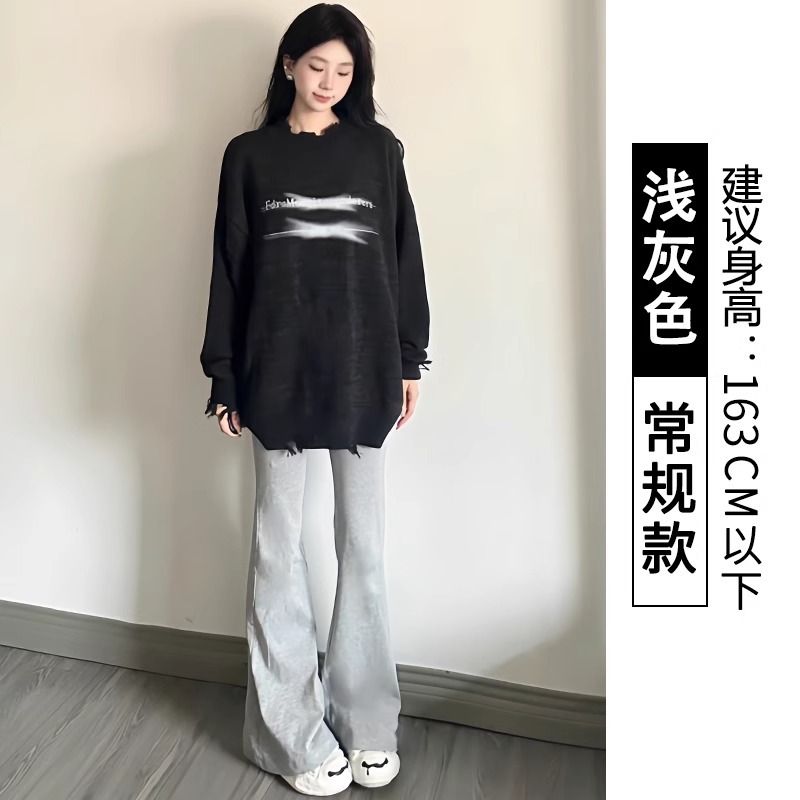 Главная страница > Серый американский микро-расклешенные брюки женский весенний новый стиль с высокой талией, тонкие повседневные брюки, вертикальные прямые широкие спортивные брюки