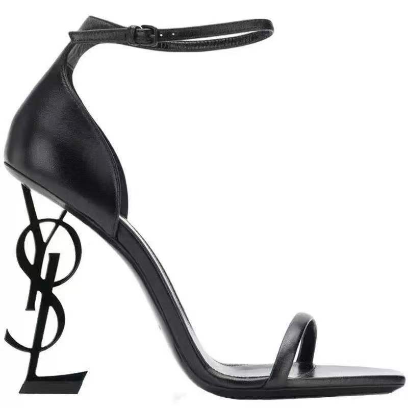 2024, летние туфли на шпильке в одном стиле с ремешком из натуральной кожи и буквенным принтом, с открытым носком, easiest для женщин, темпераментные сандалии из натуральной кожи