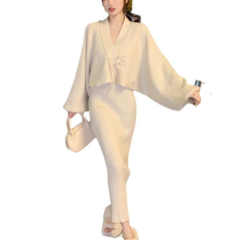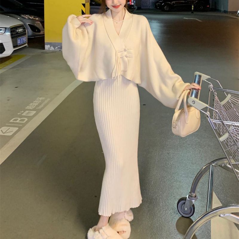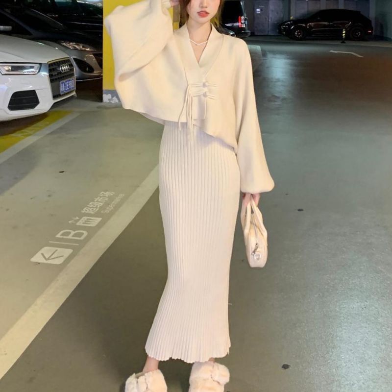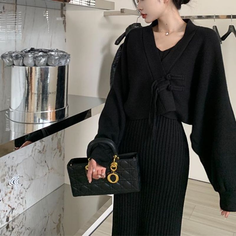 Главная страница > Комплект из двух предметов: свитер-кардиган в стиле «сладко-пикантный» и облегающее трикотажное платье на бретельках, коллекция Осень/Зима 2025