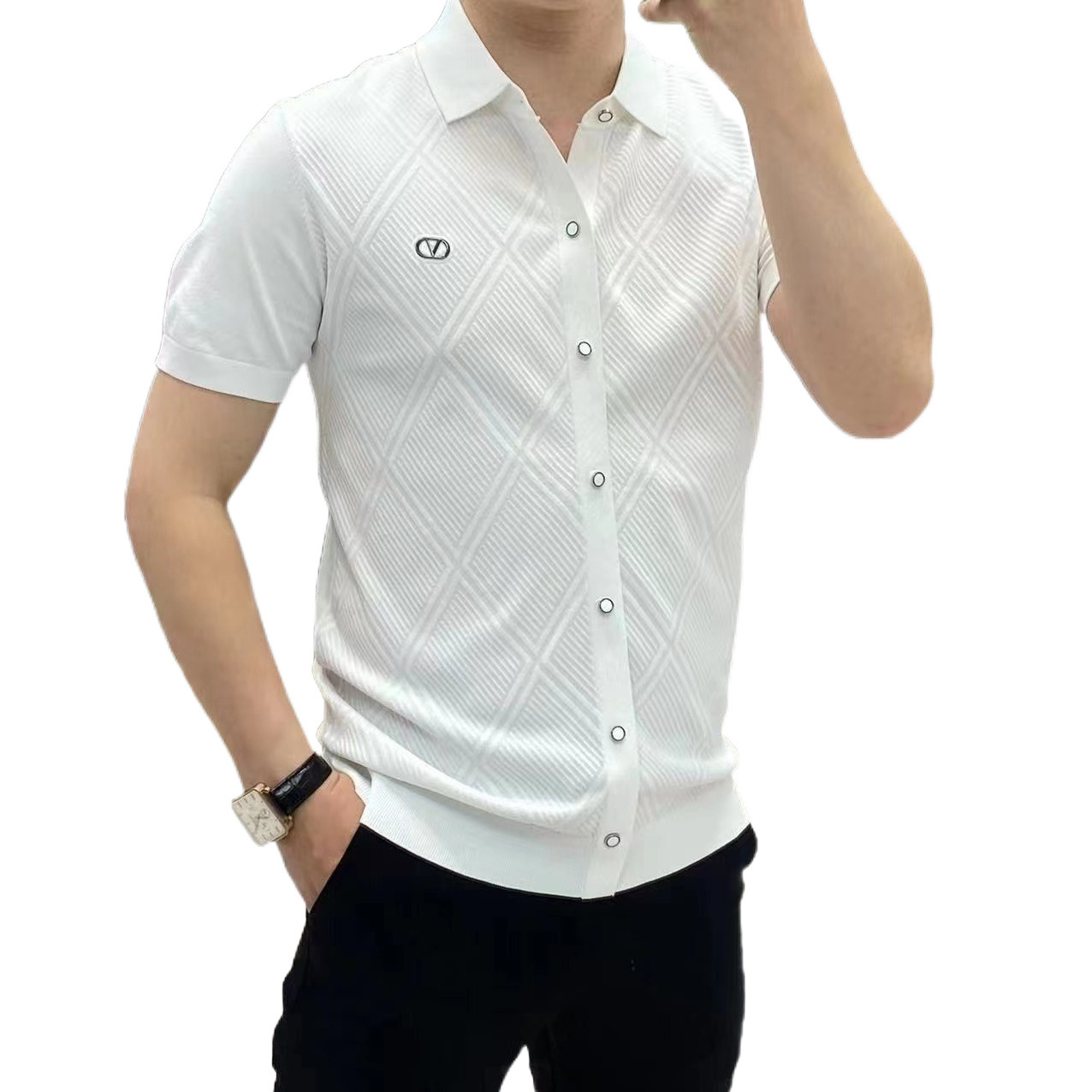 Главная страница > 2023 Летняя новая рубашка с короткими рукавами, дикая повседневная мода тонкая футболка с короткими рукавами и лацканом, бизнес-мужчина