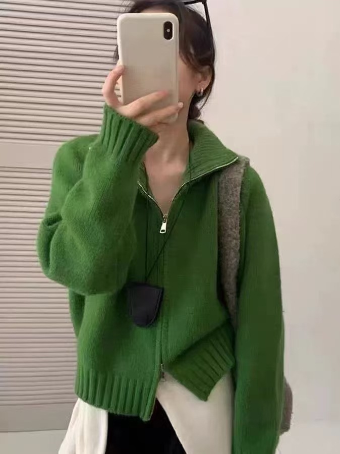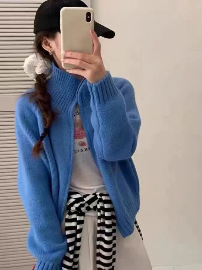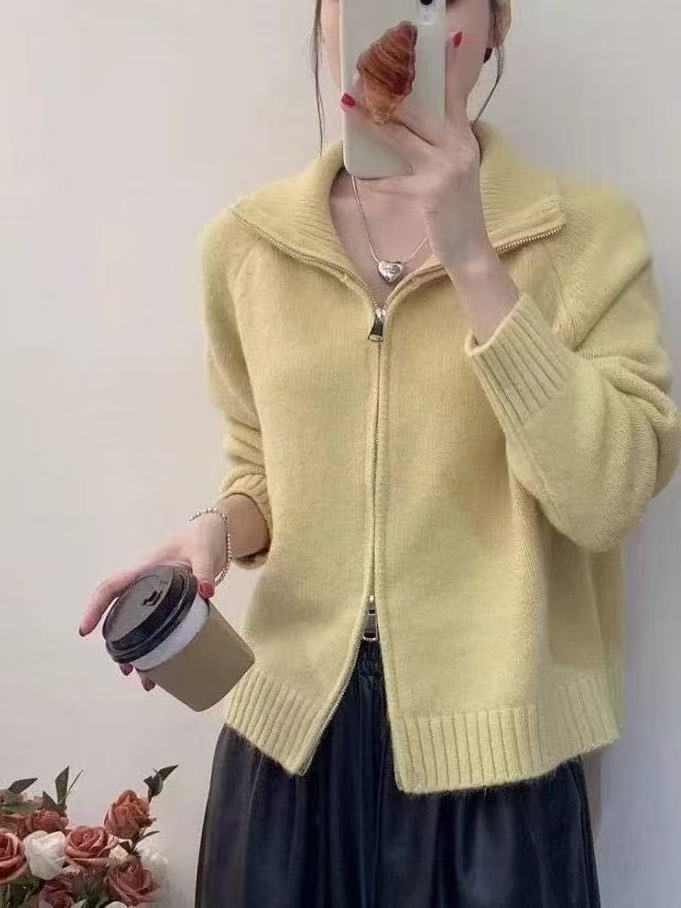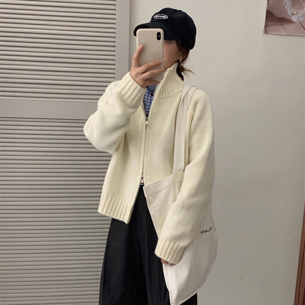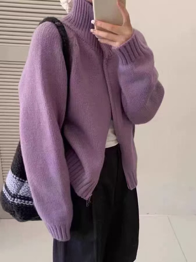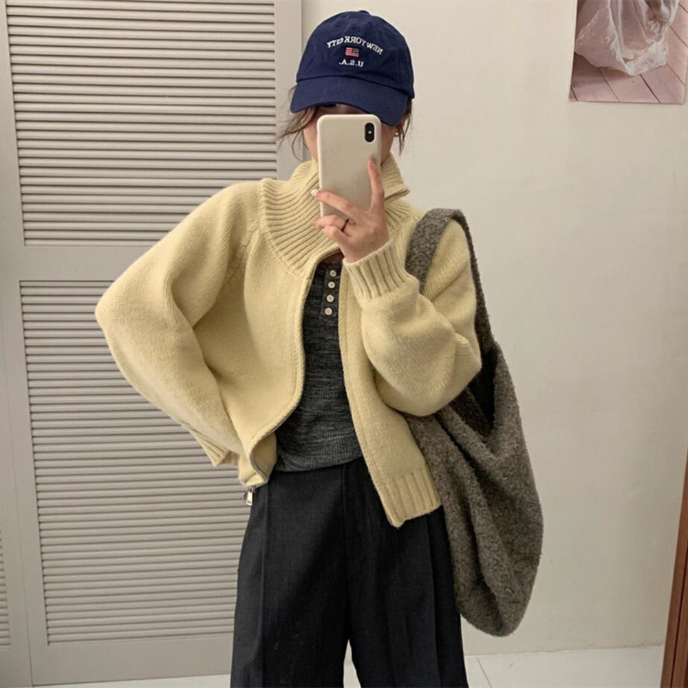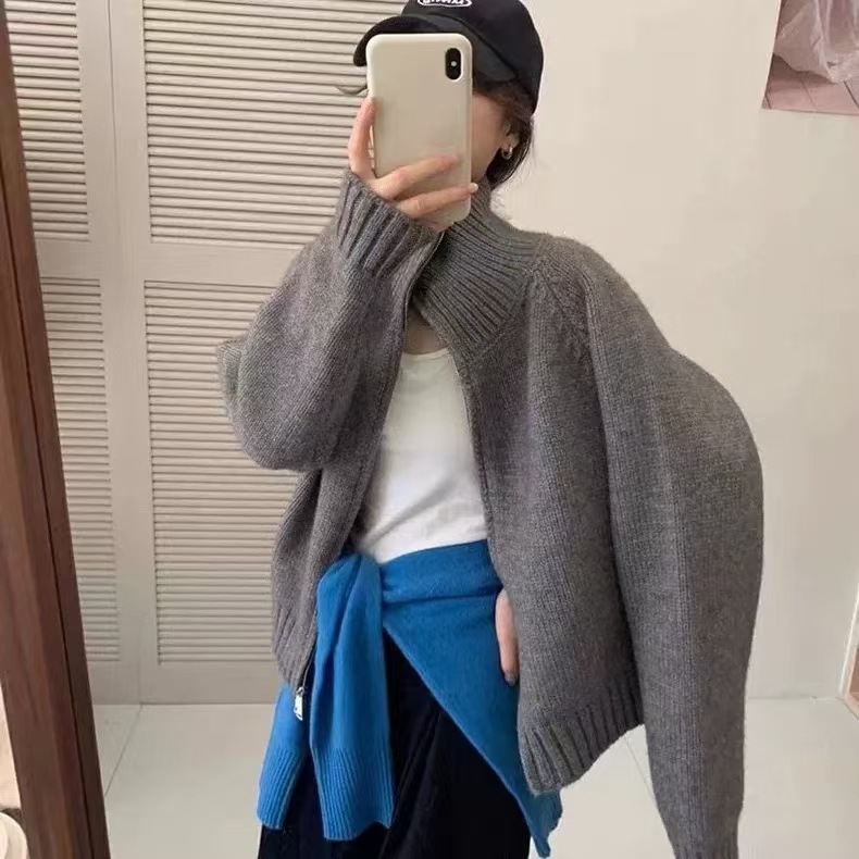 Главная страница > Новый осенне-зимний кардиган с двойной молнией, высоким воротником, толстый, из высококачественного трикотажа, в стиле «ленивый шик», женский свитер-пальто