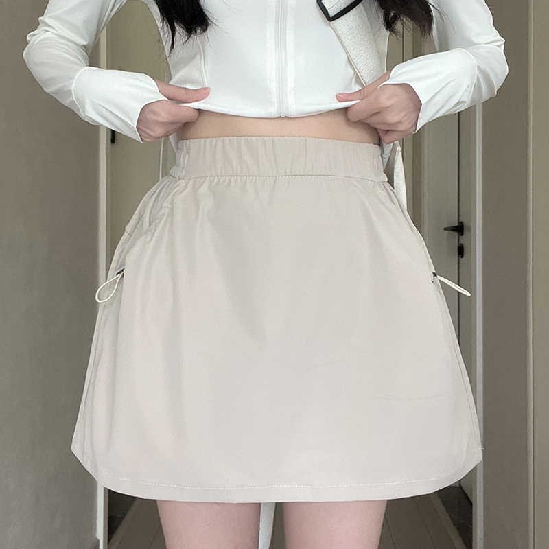 Серые быстросохнущие брюки-карго для женщин, летняя короткая юбка трапециевидной формы из ледяного шелка с высокой талией, облегающая бедра, для маленьких людей, юбка с защитой от воздействия